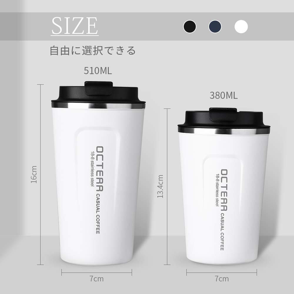 OCTERR マグカップ 保温 コーヒーカップ コンビニカップ 携帯マグ 保冷 タンブラー 真空断熱 ステンレス製 蓋付き 持ち運び 直接ドリップ プレゼントに (ホワイト, 510ml)