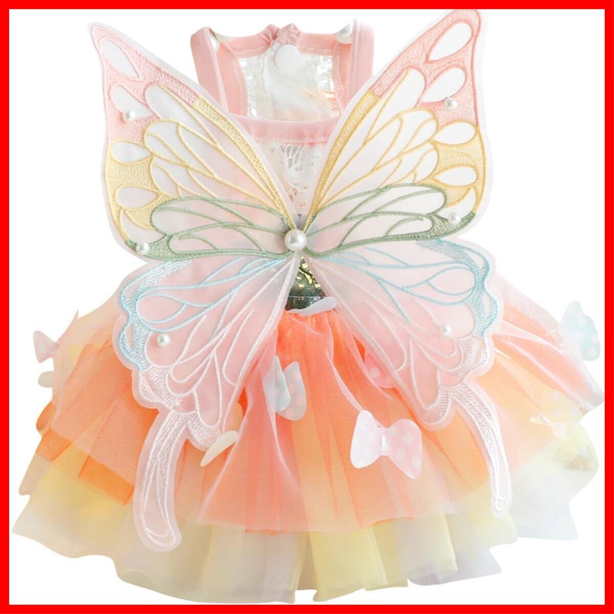 華やかペットのドレス お姫様スカート猫服 犬のカラフルな妖精のドレス 可愛い 蝶结び ウお姫様 結婚式 お祝い 記念パーティー 小型犬 プレゼント (S)