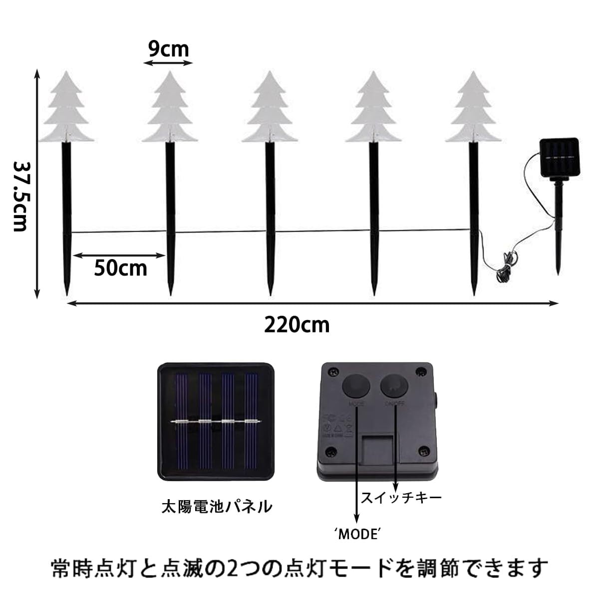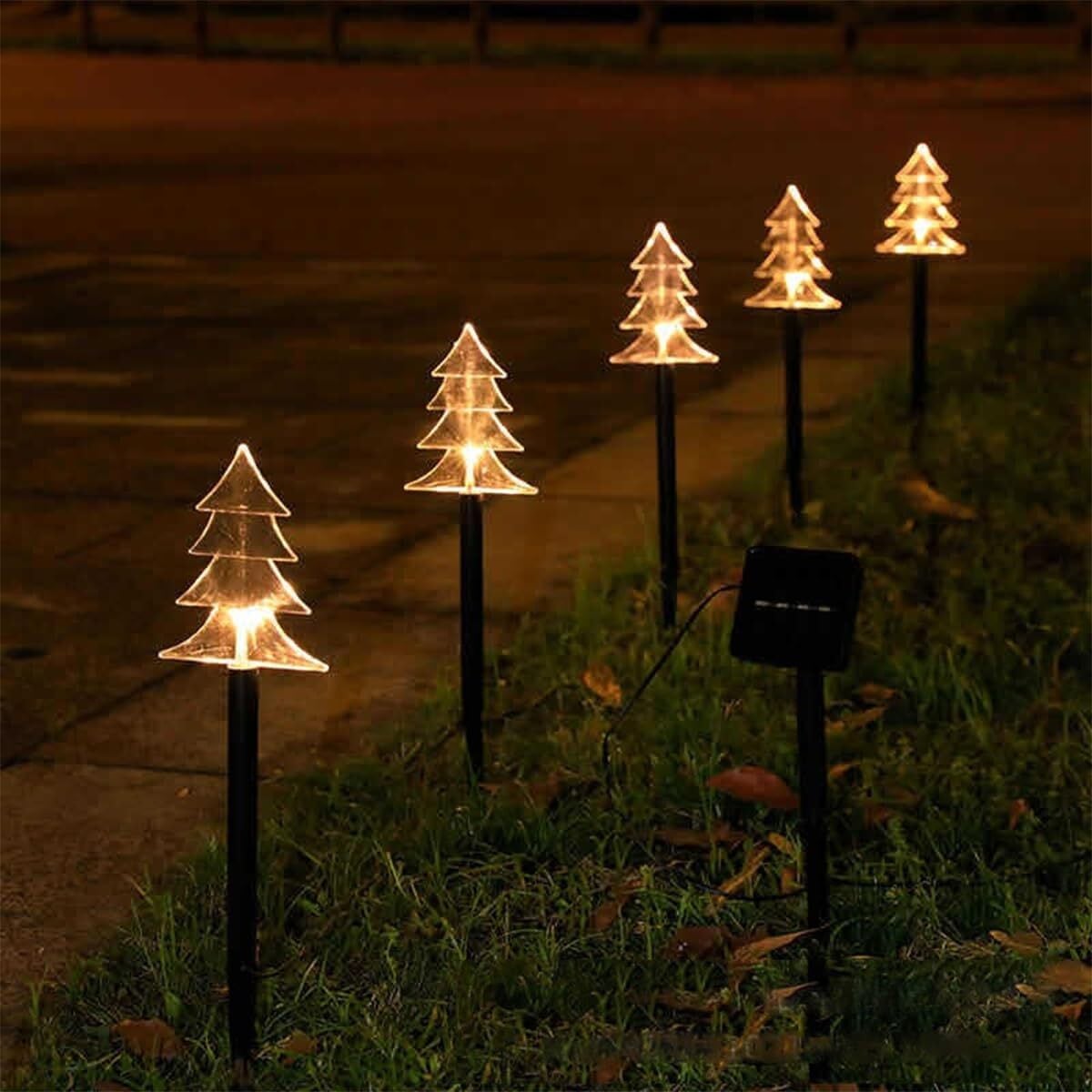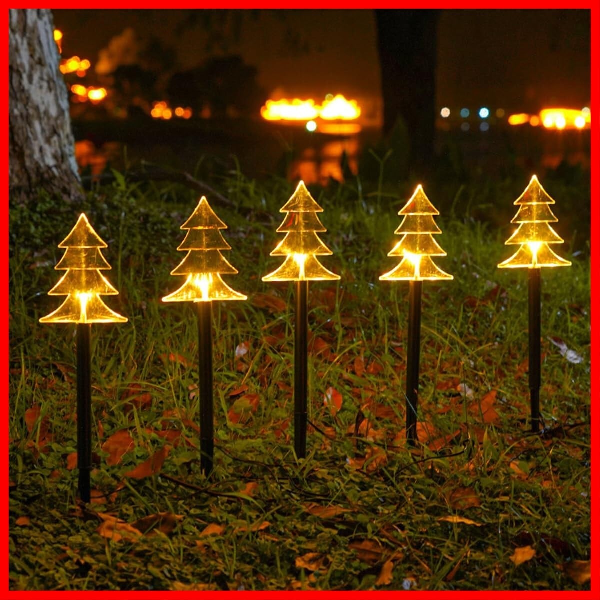 Lanito クリスマスライト ガーデンライト クリスマス ソーラーライト 暖かい白 5 in 1 クリスマス飾り ランプ 雪の結晶 星 クリスマスツリー 埋め込み式 屋外 防水 自動点灯 消灯 省エネ 照明飾り お庭 雰囲気作り 飾りライト (クリスマスツリー)