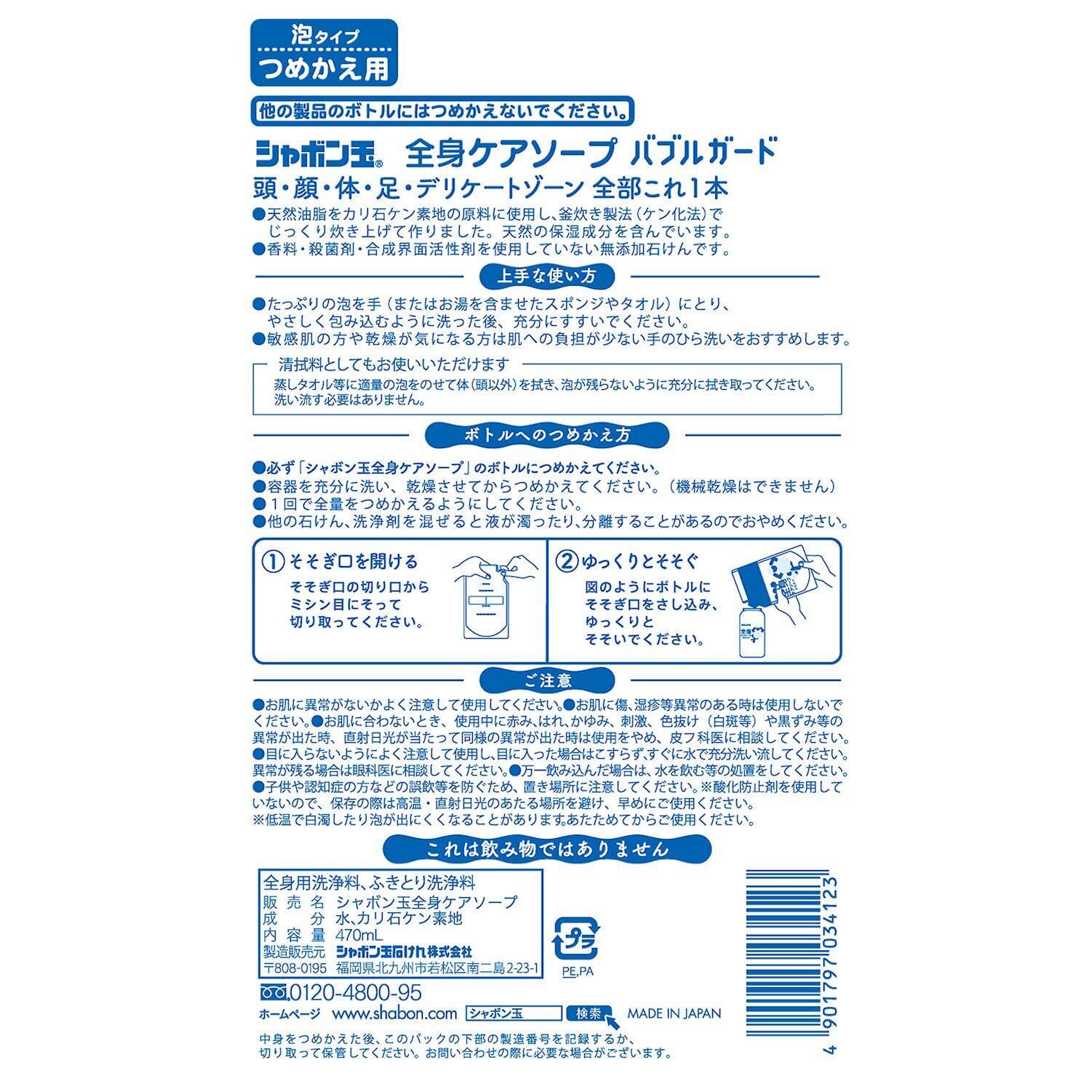 シャボン玉石けん 全身ケアソープバブルガードつめかえ用470mL (470ミリリットル(×1), 無香料)