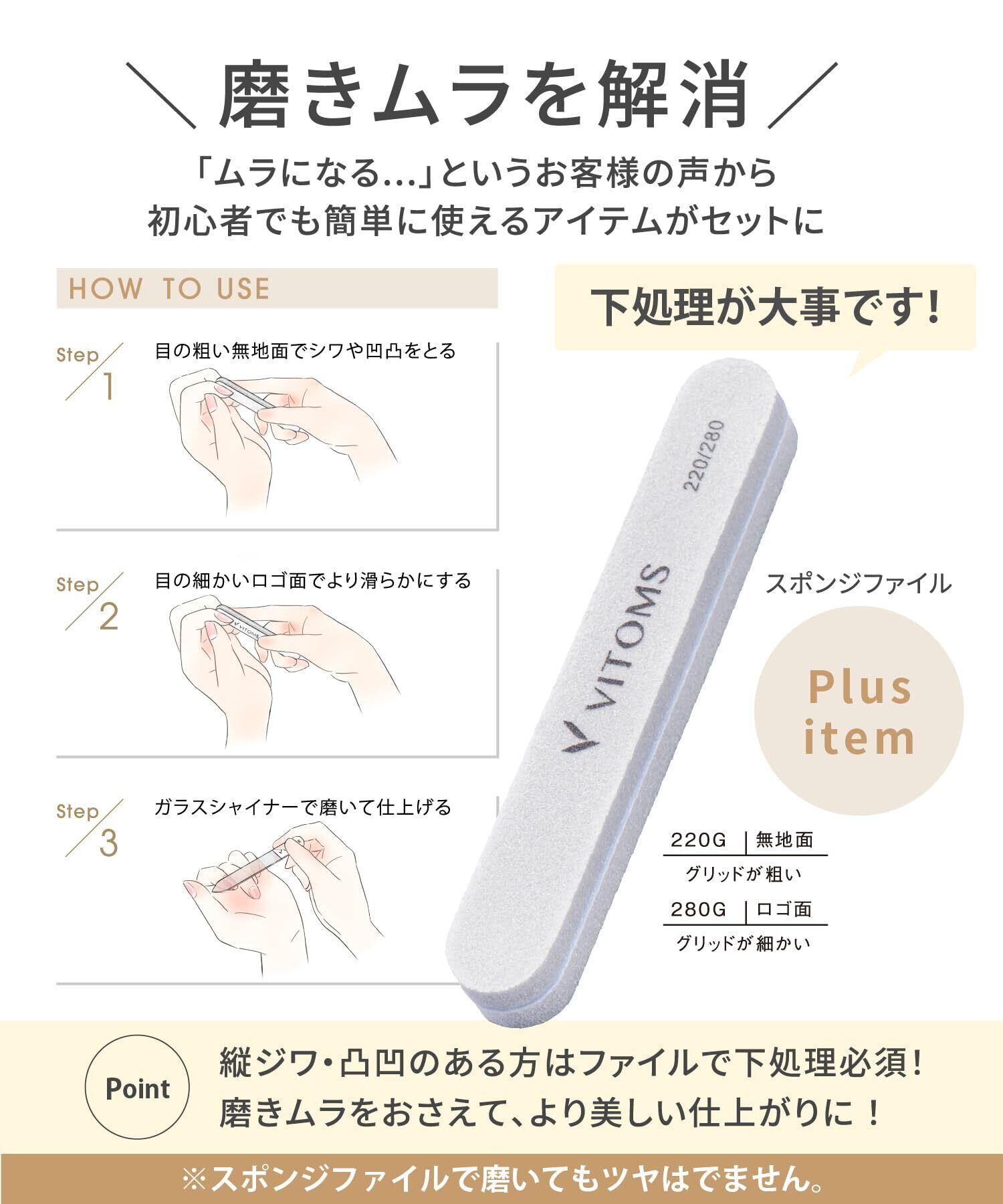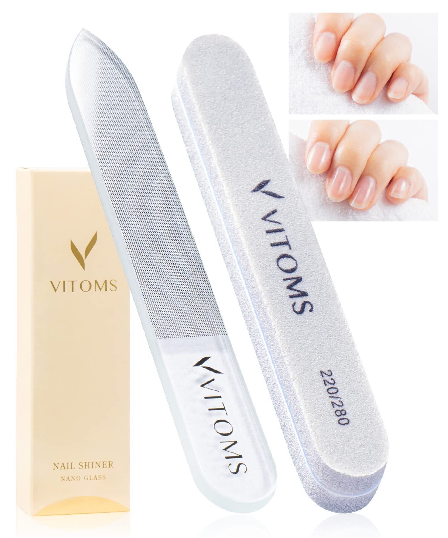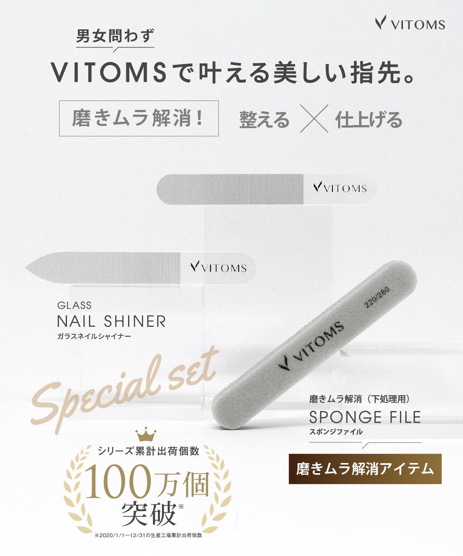 VITOMS 爪やすり 爪磨き (磨きムラ解消スポンジファイル付属) つめやすり つめみがき 爪鑢 ガラス つや出し ピカピカ ネイルケア ストレート