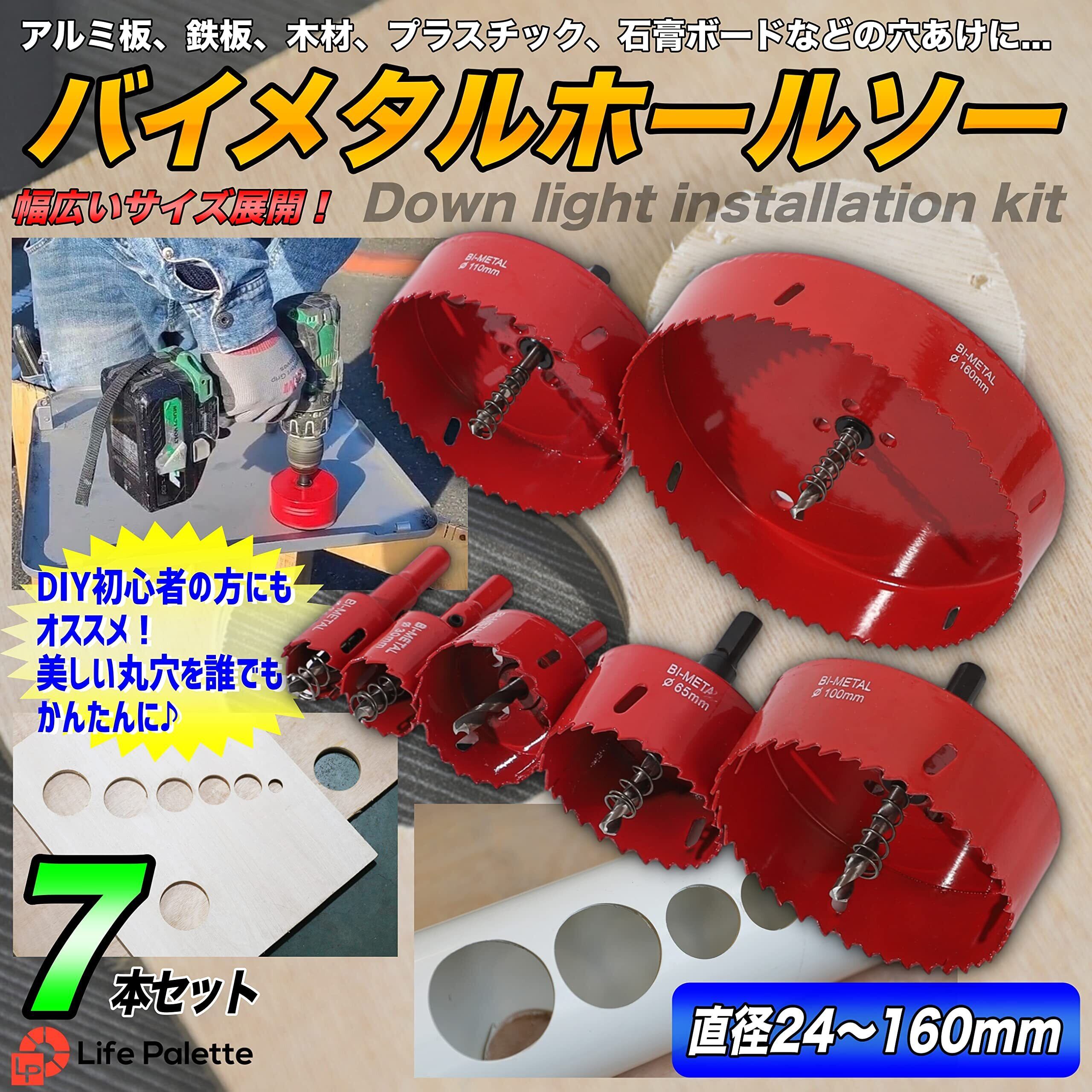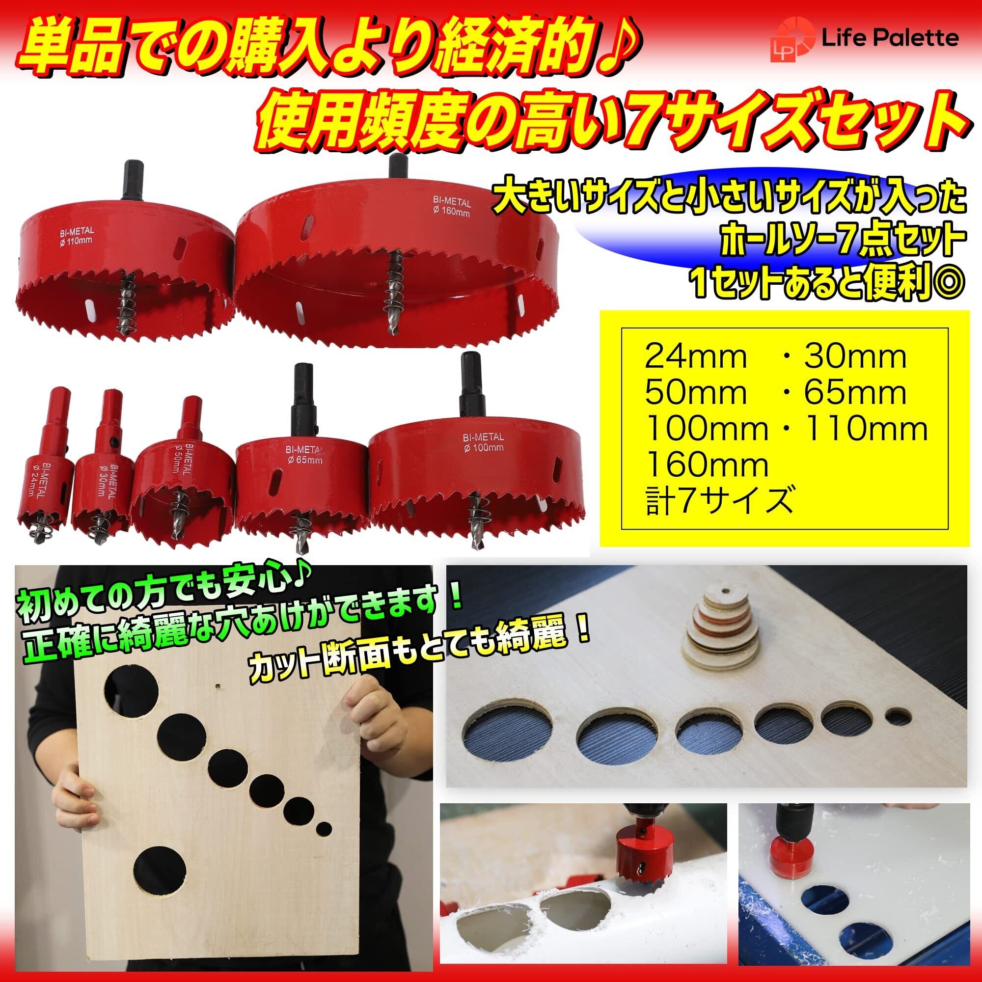 ライフパレット バイメタル ホールソー ホルソー セット 穴あけ 切削 工具 7本セット 24mm 30mm 50mm 65mm 100mm 110mm 160mm