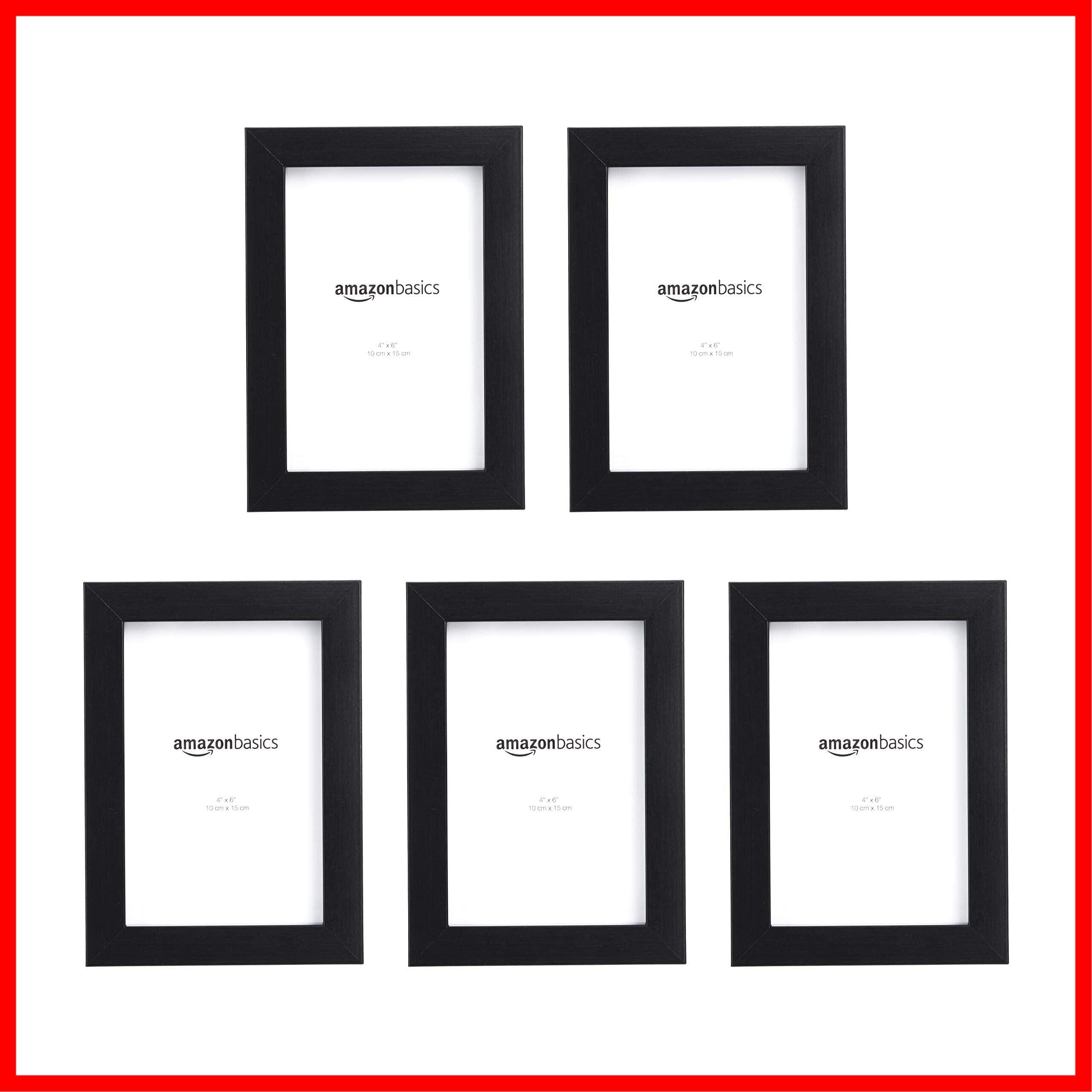 ベーシック 長方形フォトフレーム はがきサイズ対応 ブラック 5点セット 15.2 L x 10.2 W cm