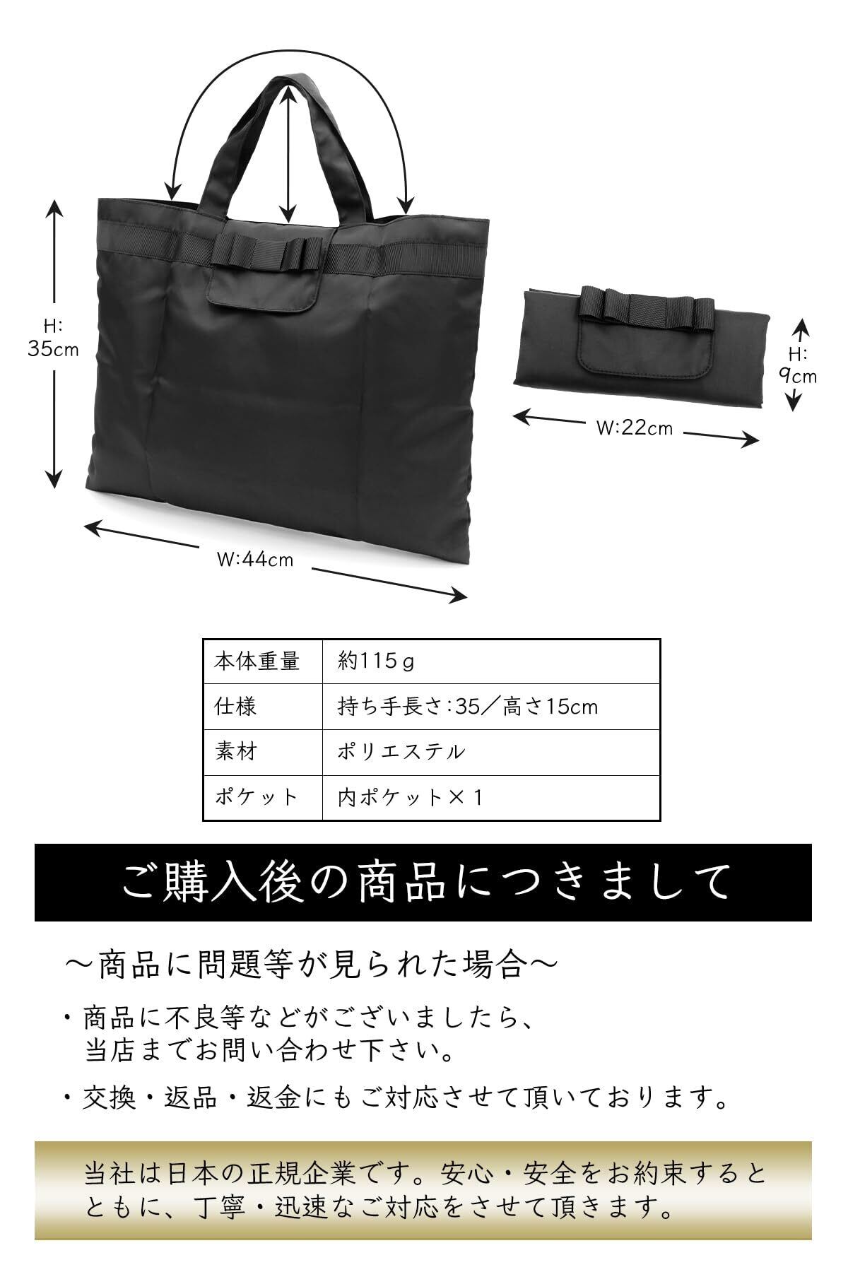 【サイズ】◆使用時:約W44×H35(cm) ◆折りたたみ時:約W22×H9(cm) 持ち手長さ:約35/高さ15(cm) 【本体重さ】約115g 【ポケット】内側:オープンポケット×1 【開閉口】オープン、スナップボタン