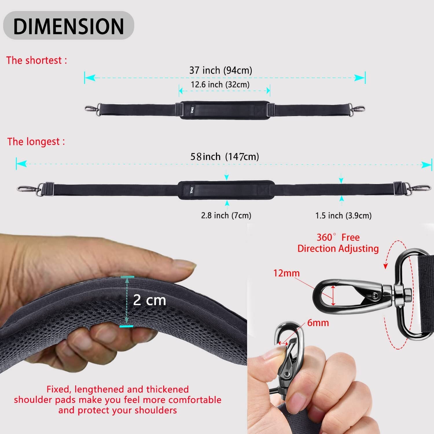 [ZINZ] 147CM ナイロン ショルダーベルト ショルダーストラップ 超耐久性 肩掛けひも - ショルダーバッグ・PC バッグ・カメラケース・ビジネスバッグ・スポーツバッグ・ツールキット・ギターバッグ など,黒