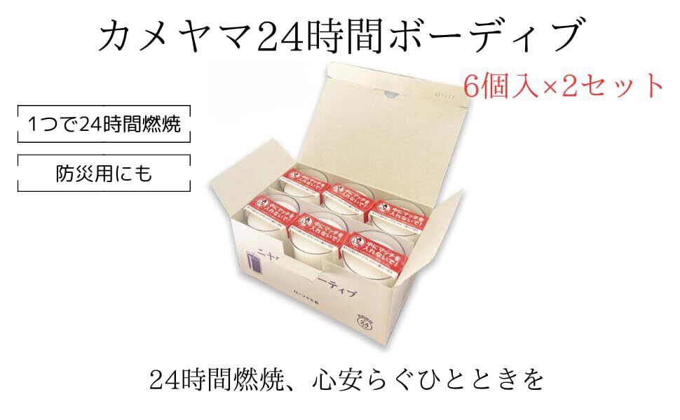ロウソク カメヤマローソク 24時間ボーディブ 12個 カップ入り 蝋燭 candle 災害 (6個x2) felvita ギフトシール付