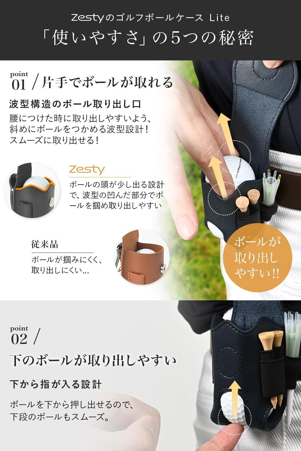 Zesty ゴルフボールケース Lite 機能性にこだわるプレイヤーのゴルフ ボールポーチ ゴルフボール 入れ ホルダー ゴルフ用品 小物 (ブラック)