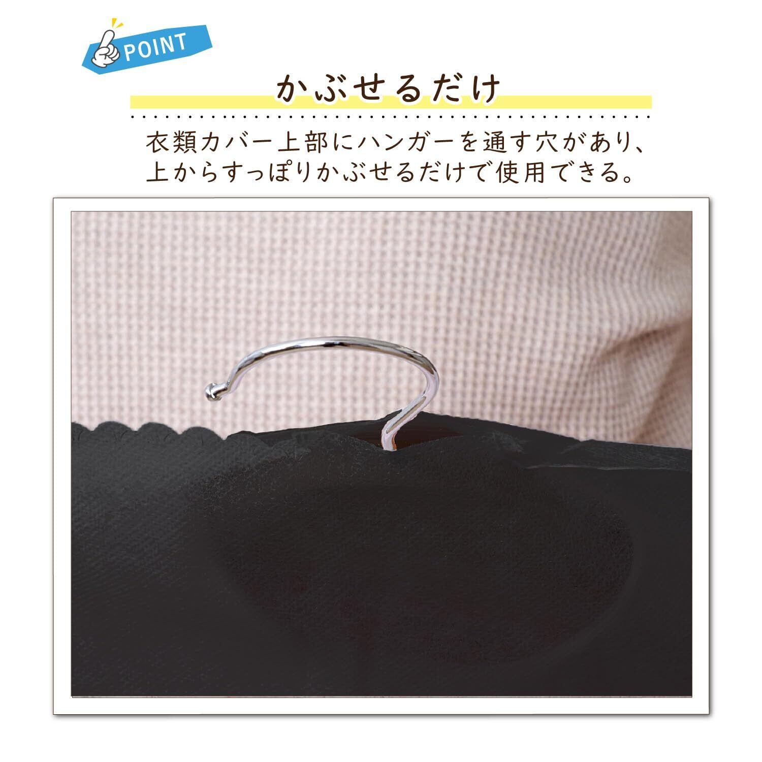 ●カバーを掛けておくことで保管中に洋服同士が擦れず、毛玉の発生や傷みを防げる。