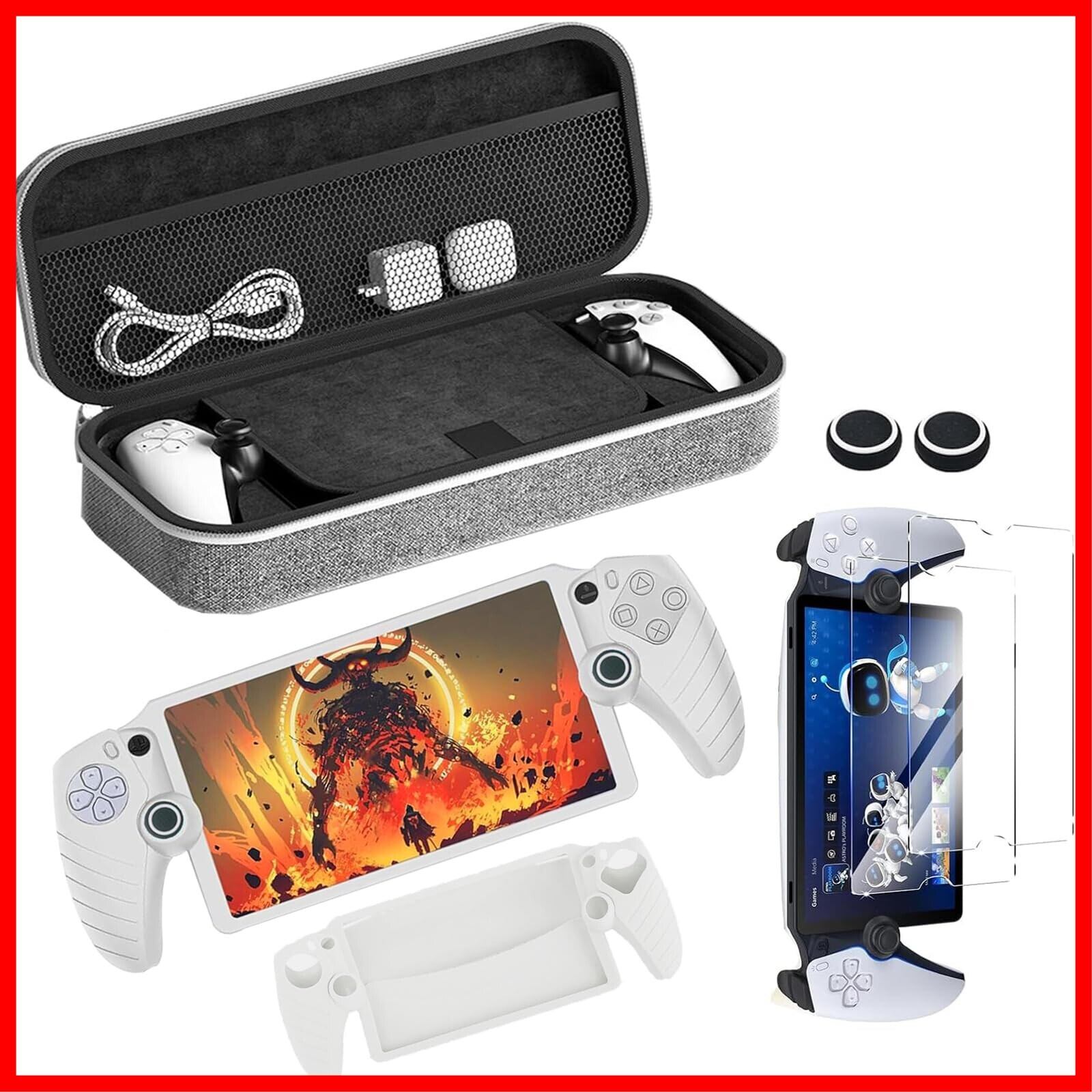PS Portal 用収納ケース 【新登場-4IN1】Lwuckbarrt for Playstation Portal 収納バッグ+PS Portal 用保護カバー+PS Portal 用サムキャップ+PS Portal 用リモートプレーヤー用ガラスフィルム用 9H 硬度 psポータブル収納ボックス 付属品収納可 大容量 耐衝撃 傷つけ防止 防水防塵 持ち運び便利 保護カバー 収納バッグ