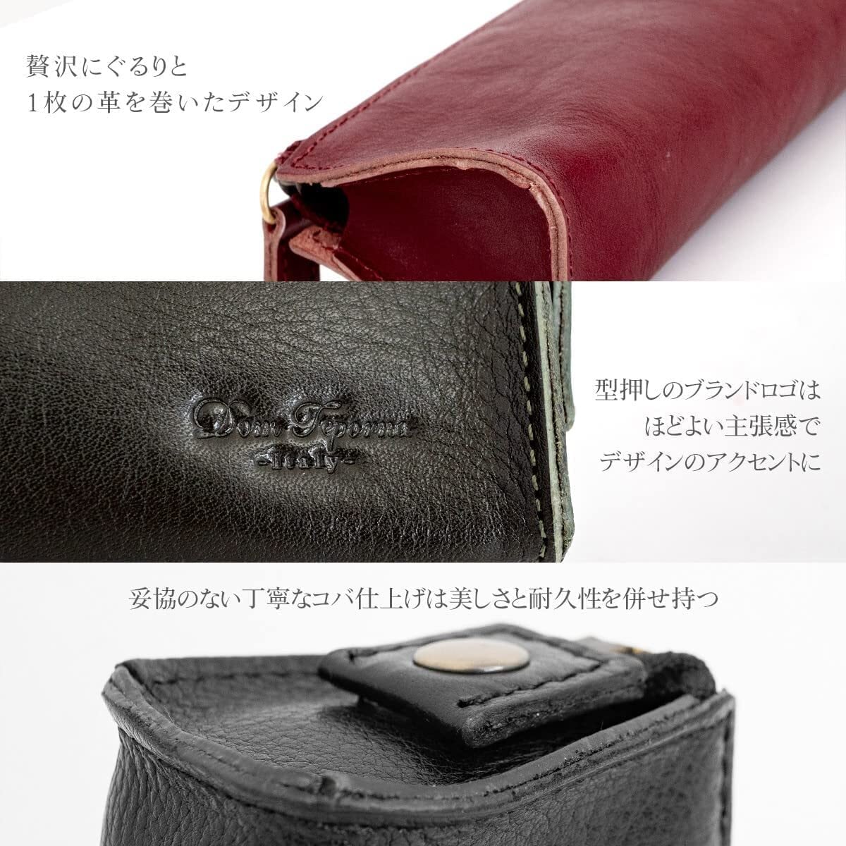 サイズ : 縦 190mm × 横 40mm × 高 55mm 重さ : 42g 素材 : 本牛革 イタリアンレザー