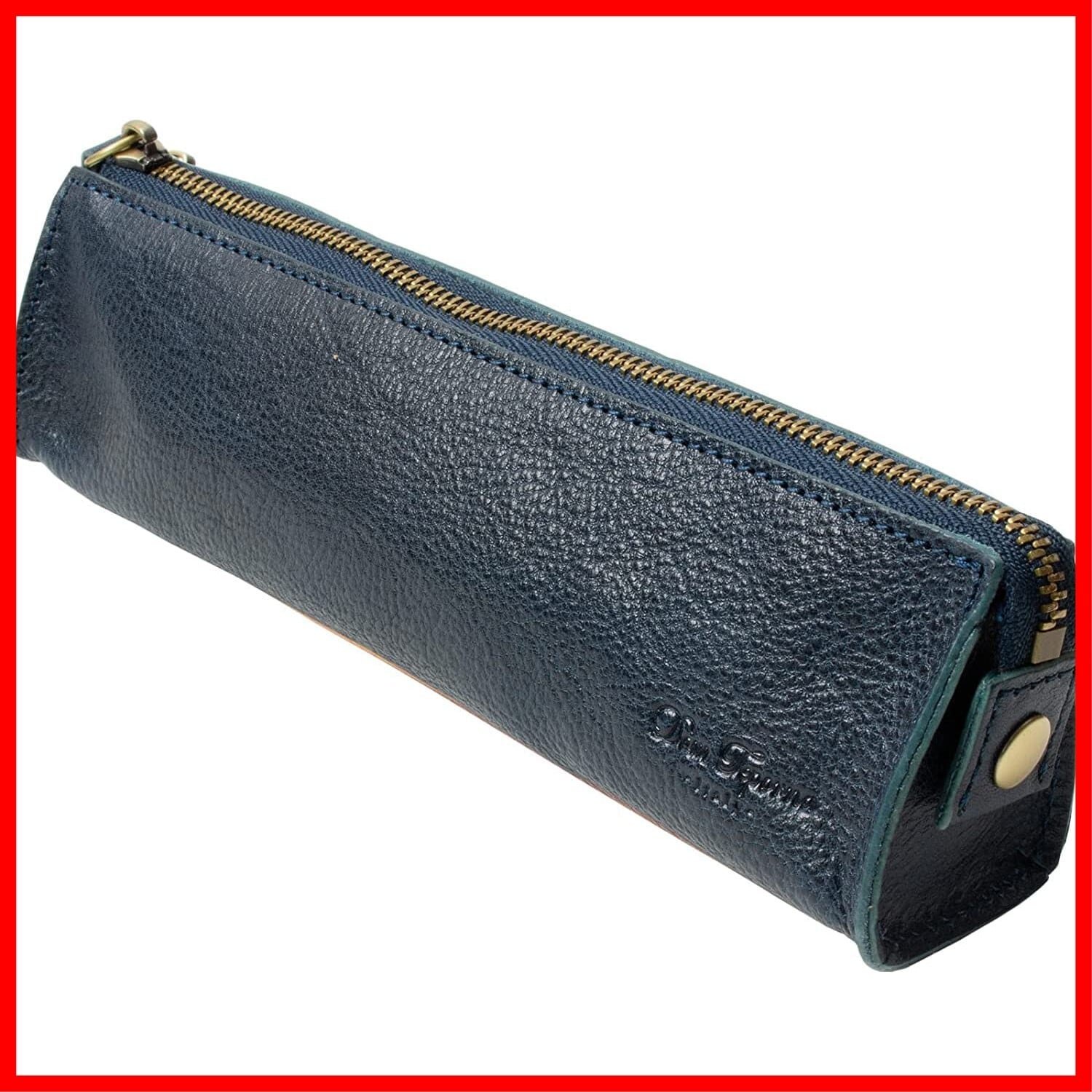 [Dom Teporna] ペンケース 筆箱 本革 スリム おしゃれ レザー 革 イタリアンレザー スムーズな ファスナー 小さい 万年筆 ペン 文房具 ネイビー