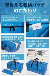 背負える収納袋 大きいバッグ 収納ケース 引越しバッグ 大型収納袋 持ち手付き 布団収納バッグ 大容量 洋服収納 防塵防水バッグ 特大 JOIEM (2, 透明)