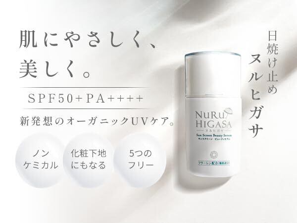【ご使用方法】スキンケアで肌を保湿し、ヌルヒガサを適量手に取り顔になじませます。顔だけではなく体にもお使いいただけます。汗をかいたときなどは、2~3時間ごとに軽く重ねて塗り直しをしましょう。