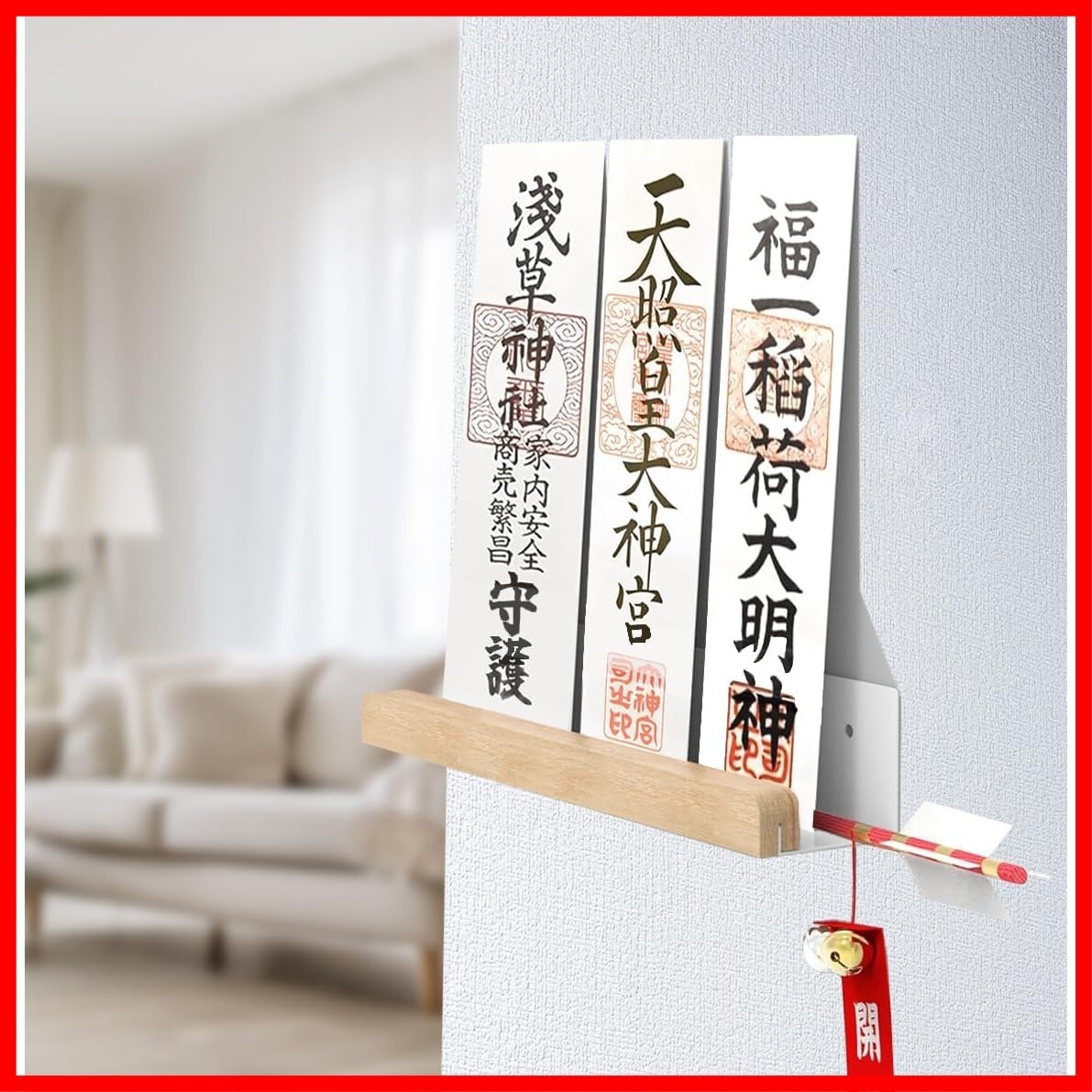 【御札立て・簡易神棚】女性一人でも取り付けやすい軽量設計で、どなたでも五分ほどでお取り付けできます。マンションやアパートなどの比較的狭い空間でも圧迫感がありません。神札や破魔矢をもらっても神棚がなく、お祀りする場所に困っている方にオススメです。