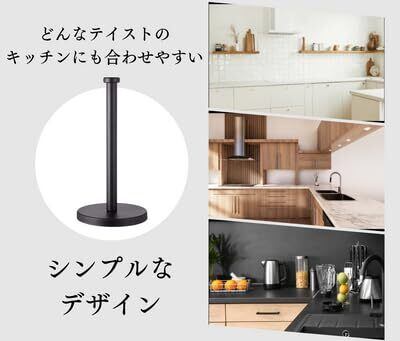 Thujopsis キッチンペーパーホルダー 倒れない 片手で切れる 吸盤付き ステンレス ペーパースタンド シンプル 大判ロール 動かない (シルバー)