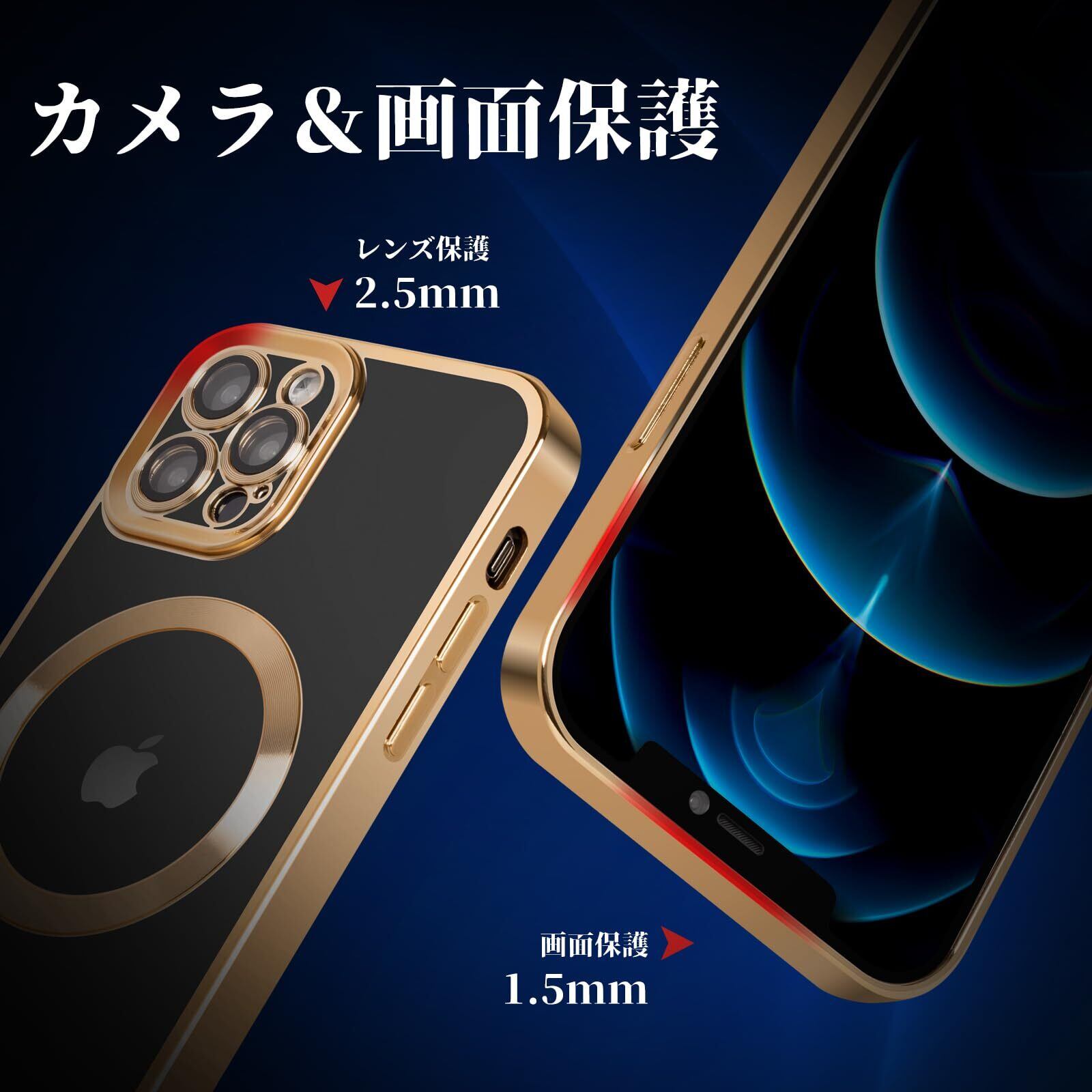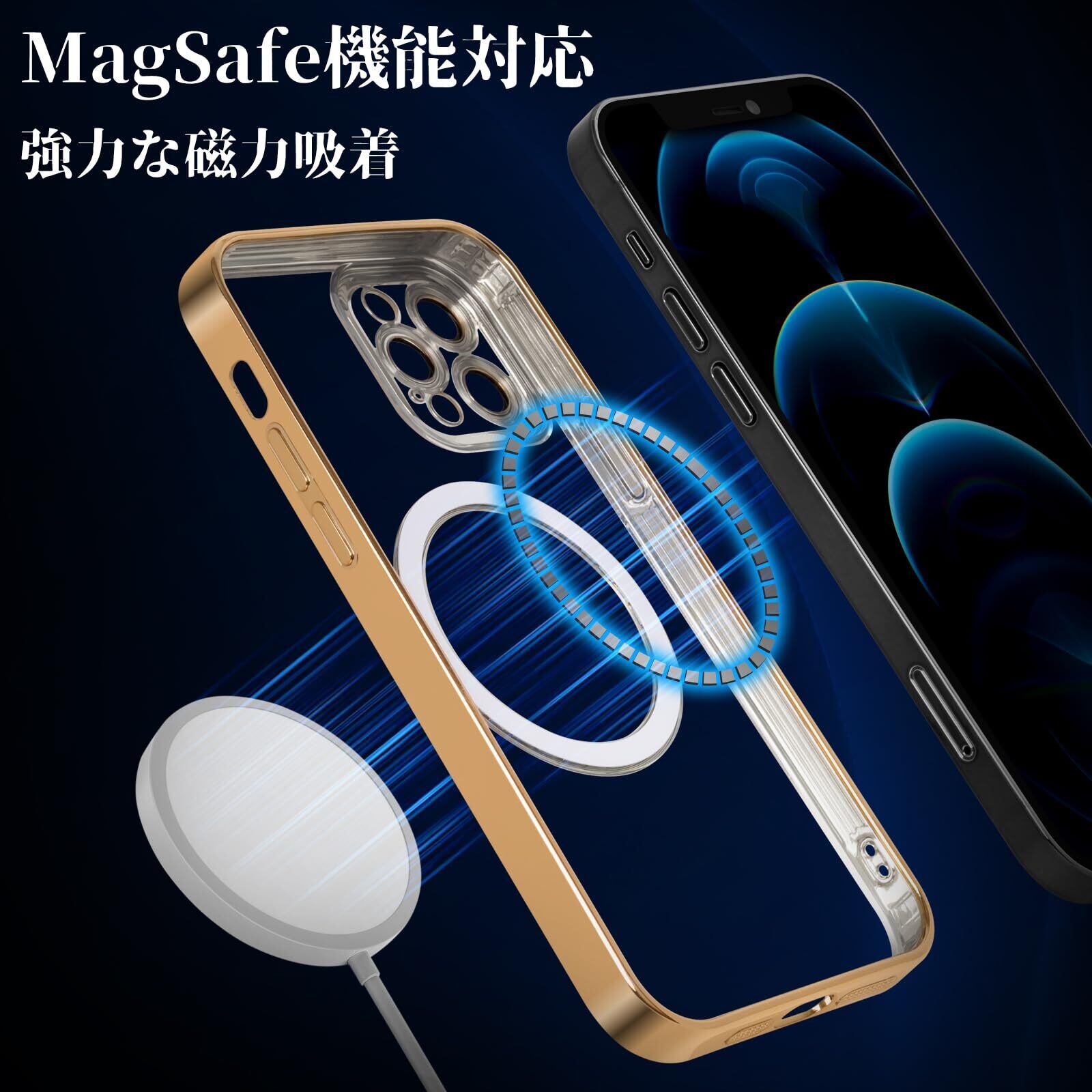 iphone 12pro ケース 2023最新 MagSafe対応 ワイヤレス充電対応 指紋防止 黄ばみなし 衝撃吸収 耐久性 レンズ保護 透明 マグネット搭載 アイフォン12Pro用カバー 6.1インチ専用 (ゴールド)