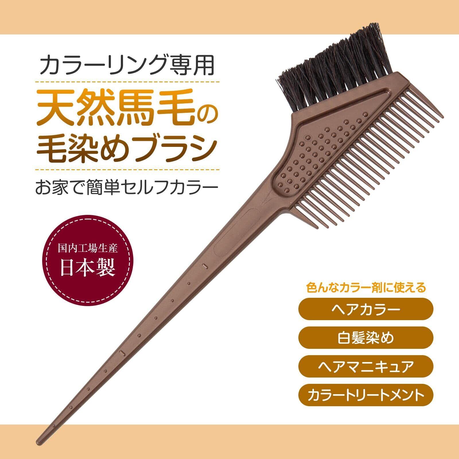 コモライフ 天然馬毛の毛染めブラシ 日本製 カラーリング おうちで簡単 セルフカラー 白髪染め 黒染め ヘアマニキュア カラートリートメント 持ち手が長い 斜めカットブラシ ヘアダイブラシ ヘアカラー ヘアコーム 髪染め コームブラシ