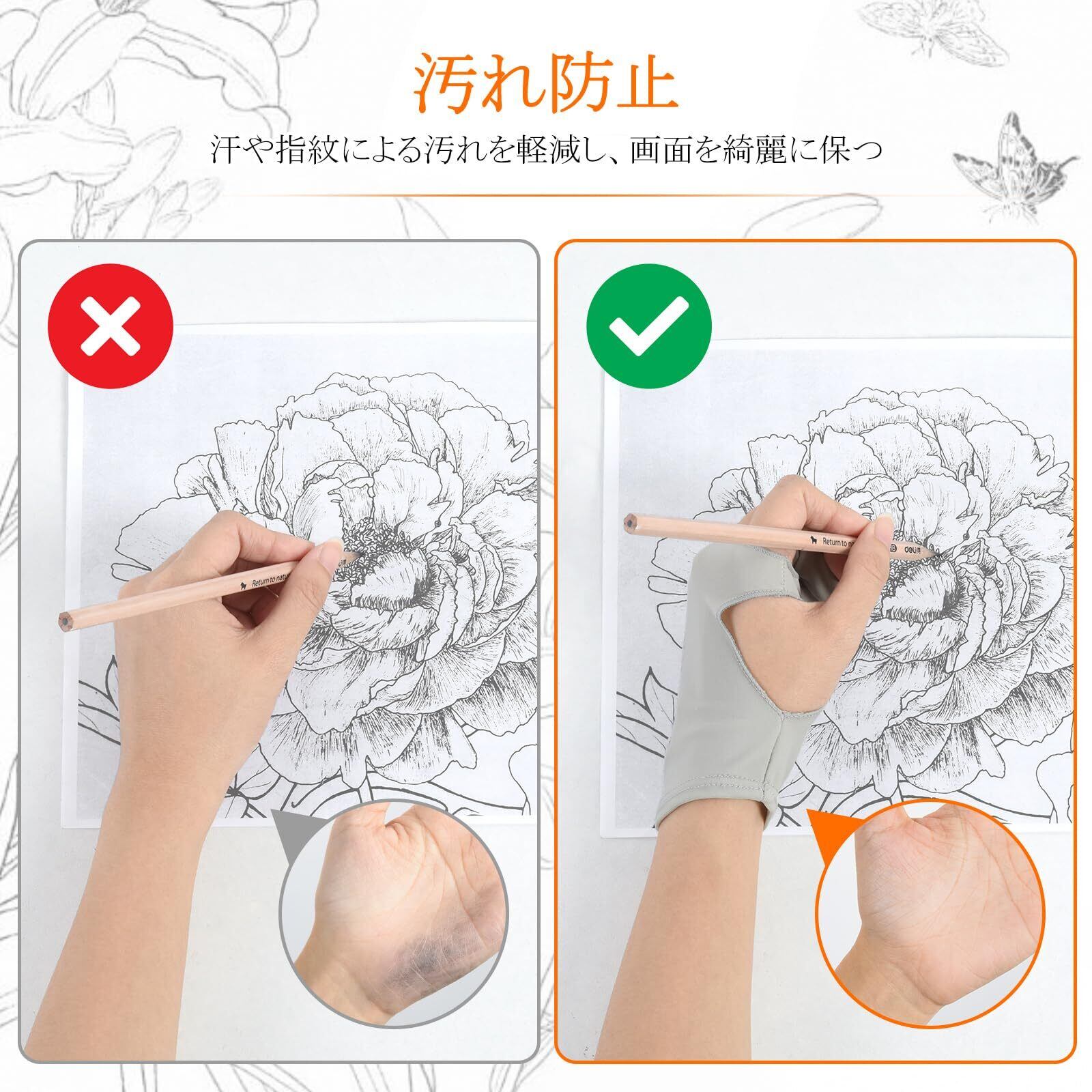 OTraki 製図用手袋 2枚入 二重厚手 8.2x20.5cm 二本指グローブ 誤作動防止 ペングローブ タブレット 防汚 手汗防止 お絵描き 手袋 ライクラ繊維 通気性 弾力性 ipad 手袋 イラスト用手袋 左利き 右利き drawing glove 絵画初心者向け グレー | hananoki
