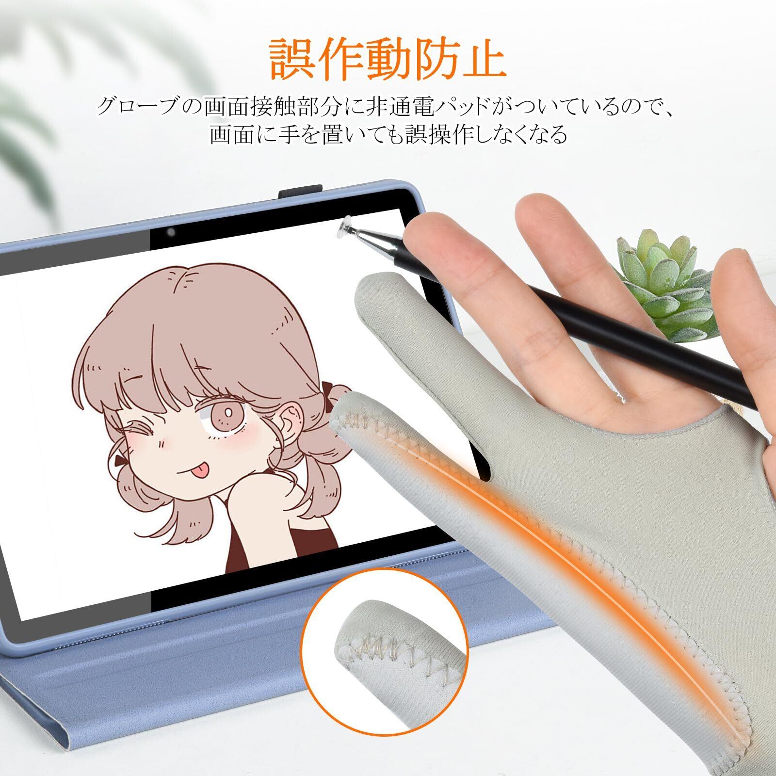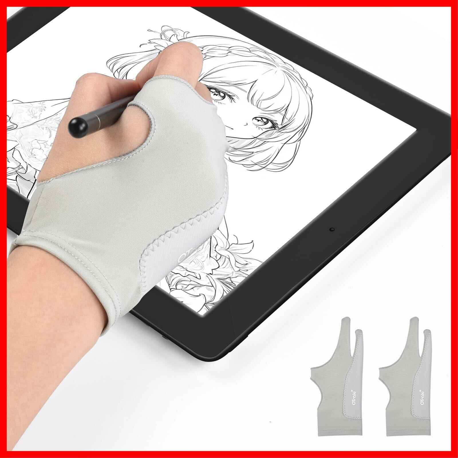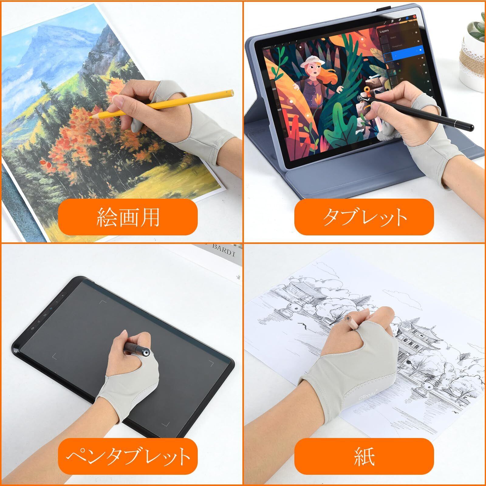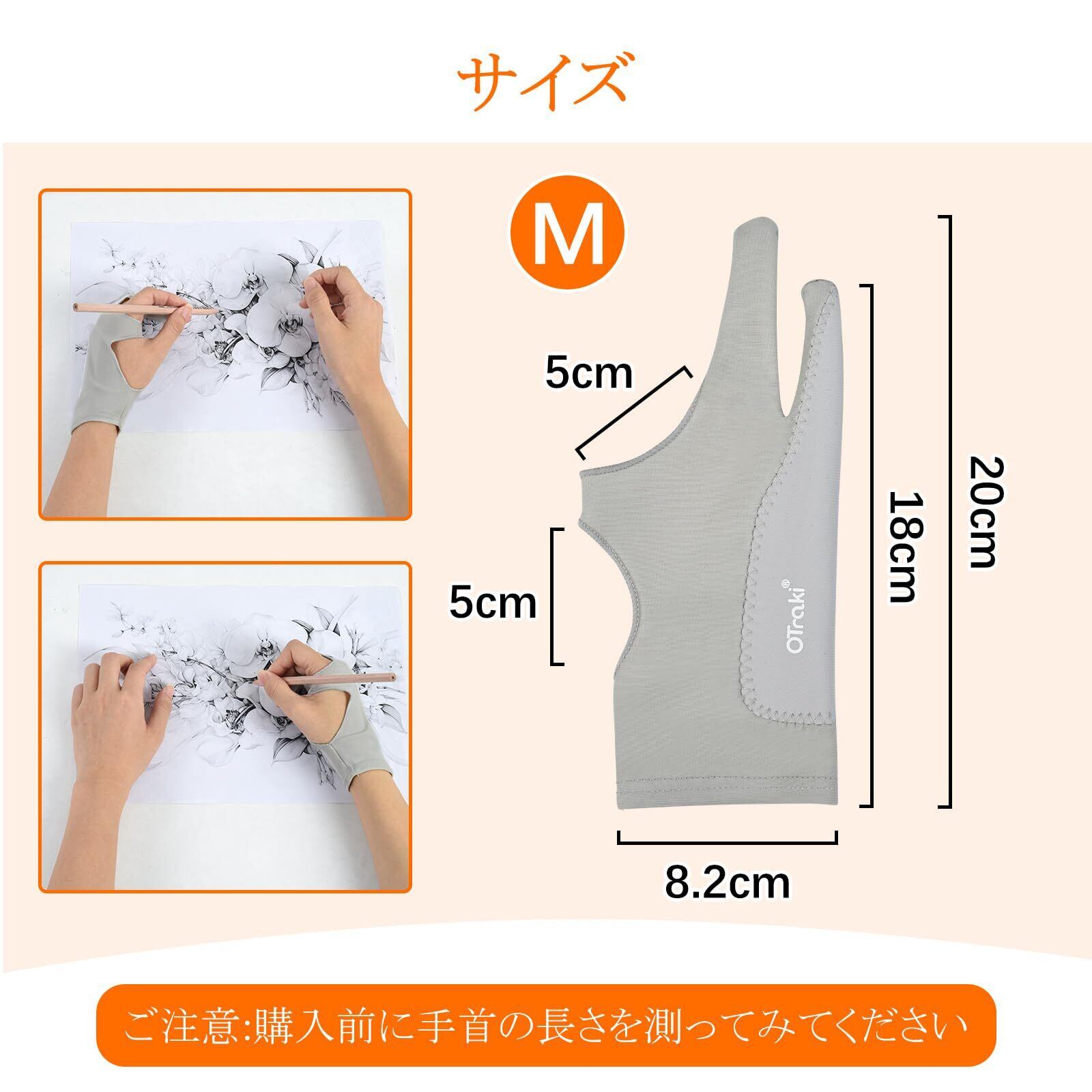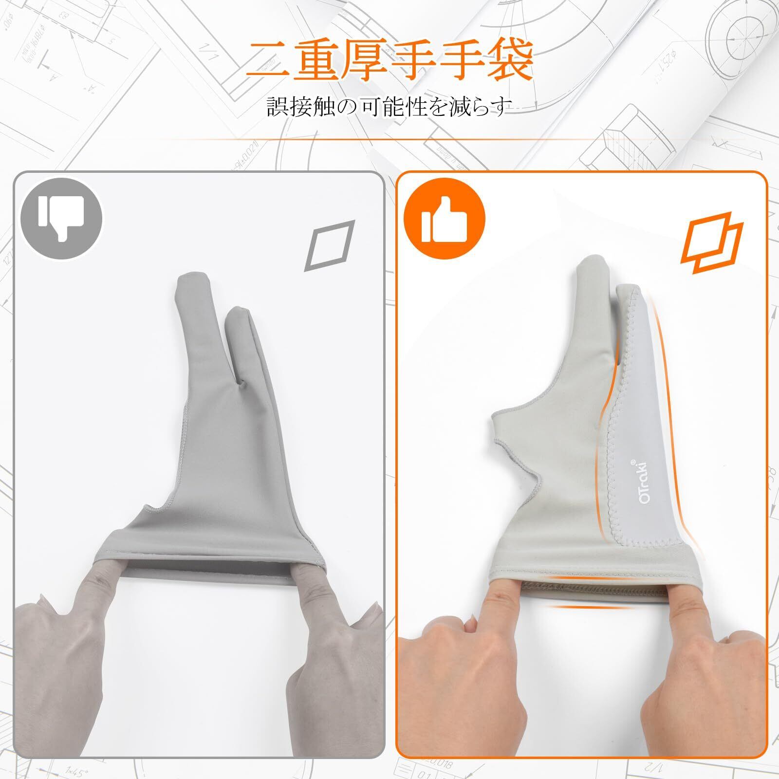 OTraki 製図用手袋 2枚入 二重厚手 8.2x20.5cm 二本指グローブ 誤作動防止 ペングローブ タブレット 防汚 手汗防止 お絵描き 手袋 ライクラ繊維 通気性 弾力性 ipad 手袋 イラスト用手袋 左利き 右利き drawing glove 絵画初心者向け グレー