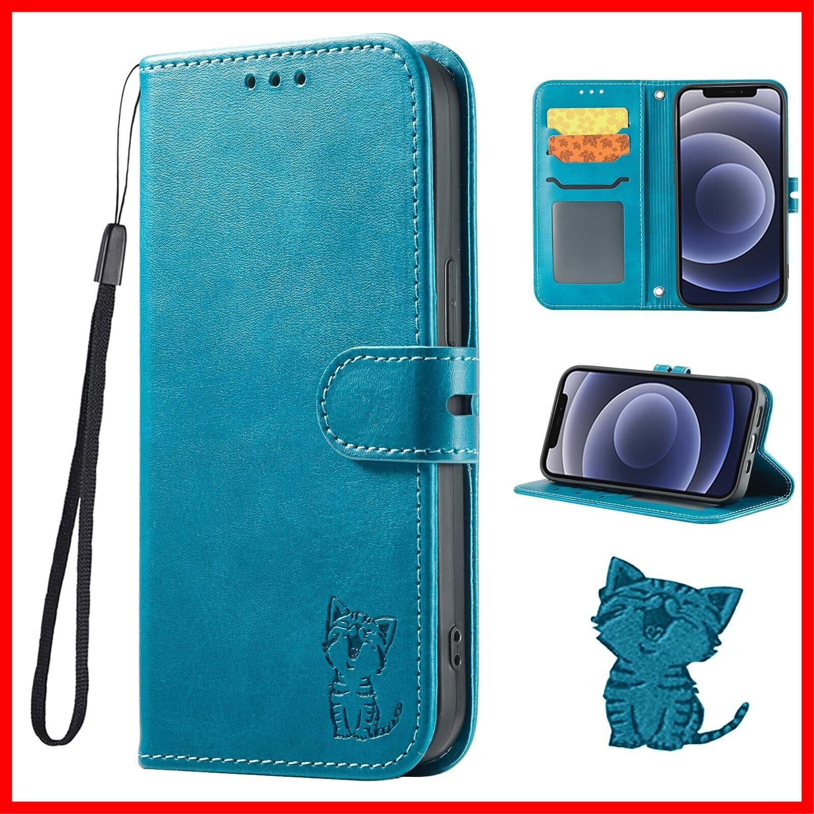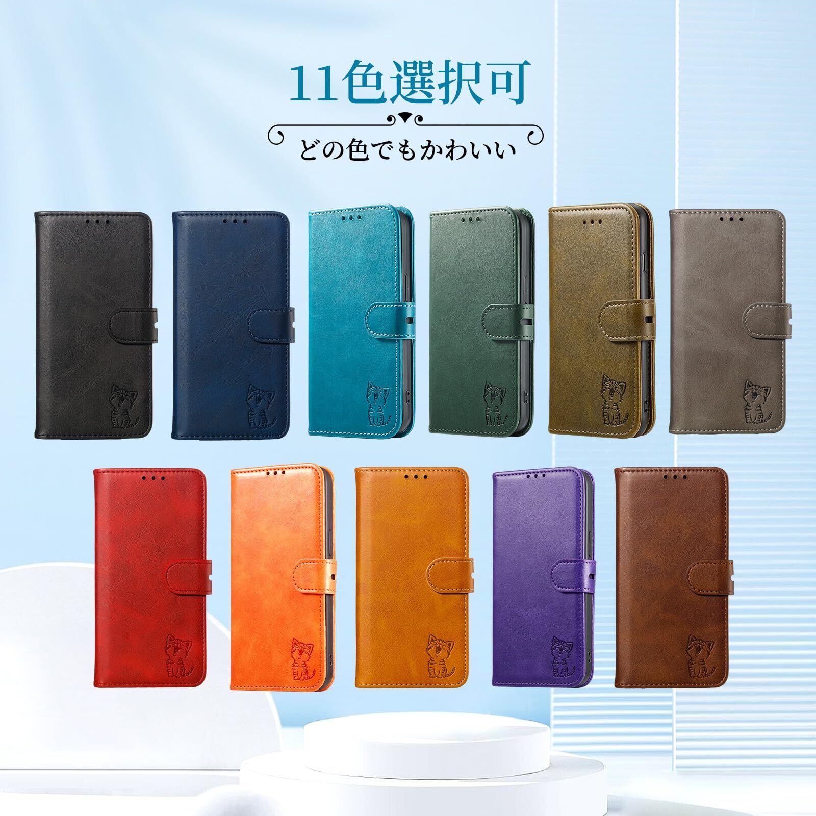 【ユニークなデザイン】シンプルながらも機能性も備わったデザインです。型押しの可愛い猫のモチーフと上品なレザーの組み合わせるケースであり、それに上下に二つのストラップ穴もあり、お好きなタッセルとストラップとかお付けられます、簡単こそクラッシクの上品を引き出せる、手作りの高級感ある色合いでちょっぴり大人なスマホケース。学生にも相応できるし、ワンポイントは笑顔猫であり、この手帳型ケースをギフトとしても最適です。
