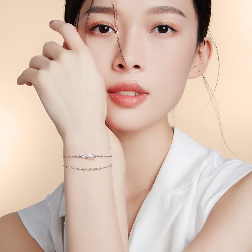 FH.bird パール ブレスレット レディース 結婚式 入学式 母の日 金属アレルギー対応 シルバー925 ブレスレット 真珠 2連 シンプル bracelet women 誕生日 プレゼント | hananoki