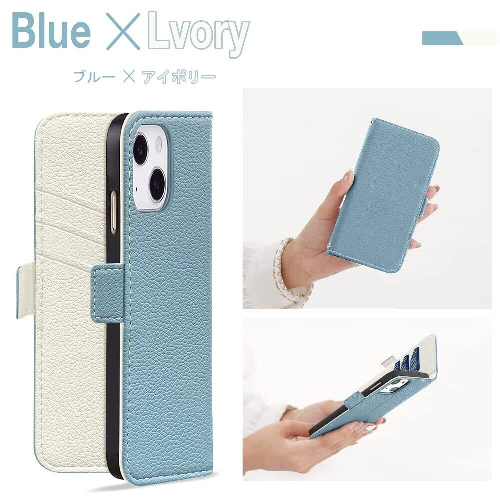MAGICASE for いphone14 ケース 手帳型 可愛い iPhone14 ケース 手帳型 おしゃれ スマホケース iPhone14 財布型 マグネット式 アイフォン14 ケース 手帳型 シンプル カード収納 スタンド機能 携帯ケースあいほん14 肌感PUレザー 軽量 衝撃吸収 iphone14 カバー人気 女性 全面保護 擦り傷防 防塵 6.1インチ(ブルー メ アイボリー)