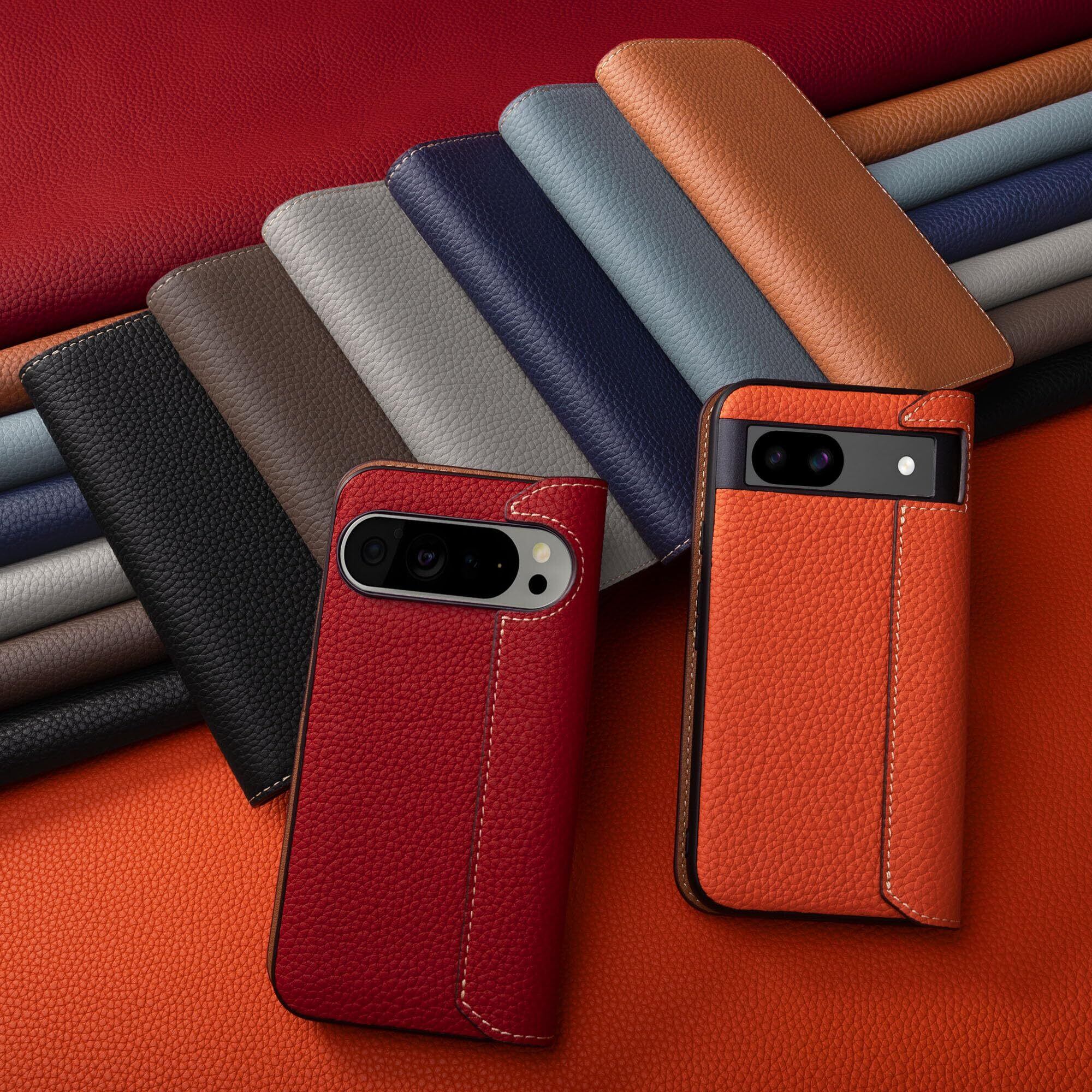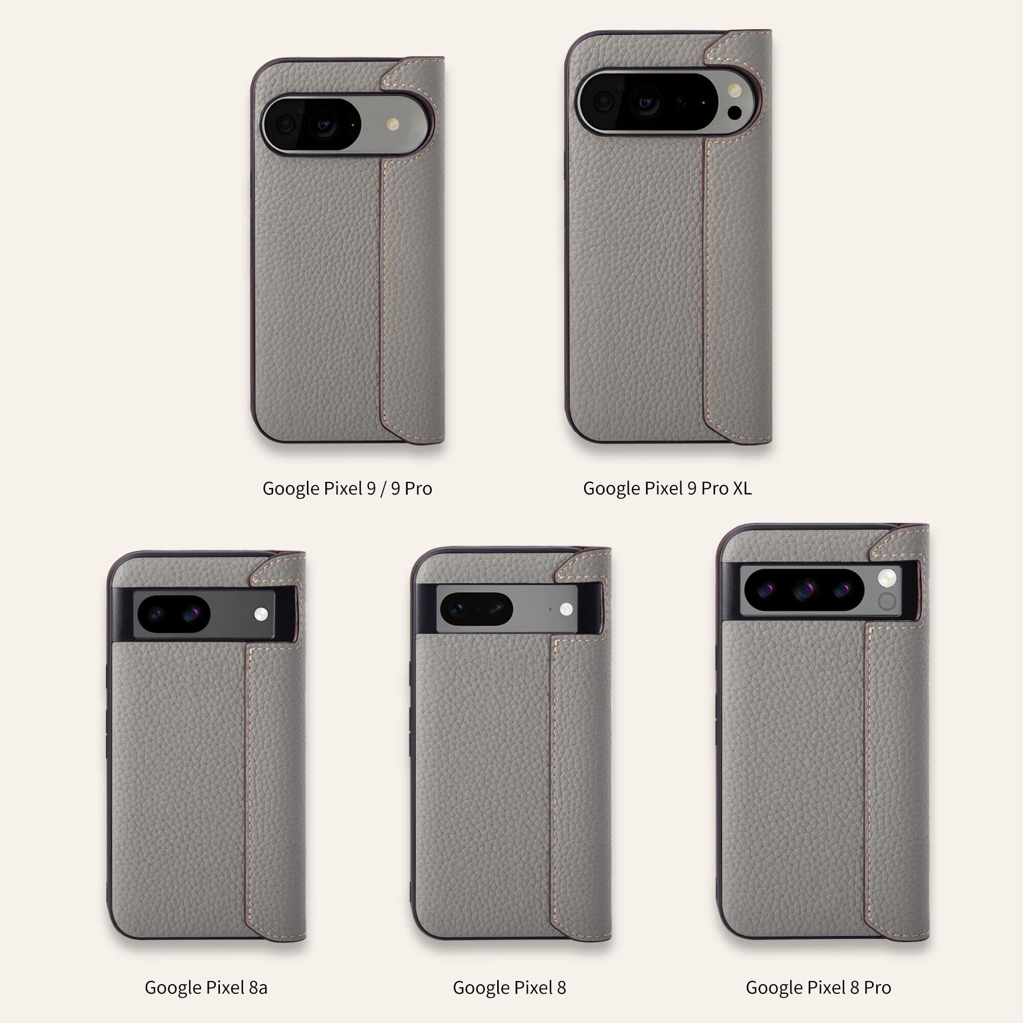 ヨーロッパの高級ブランドがこぞって採用している「シュリンクカーフレザー」と滑らかな触り心地の「スムースレザー」を組み合わせた、エレガントなGoogle Pixelケースです。上質な天然皮革が手にしっくり馴染み、贅沢な使い心地をお楽しみいただけます。