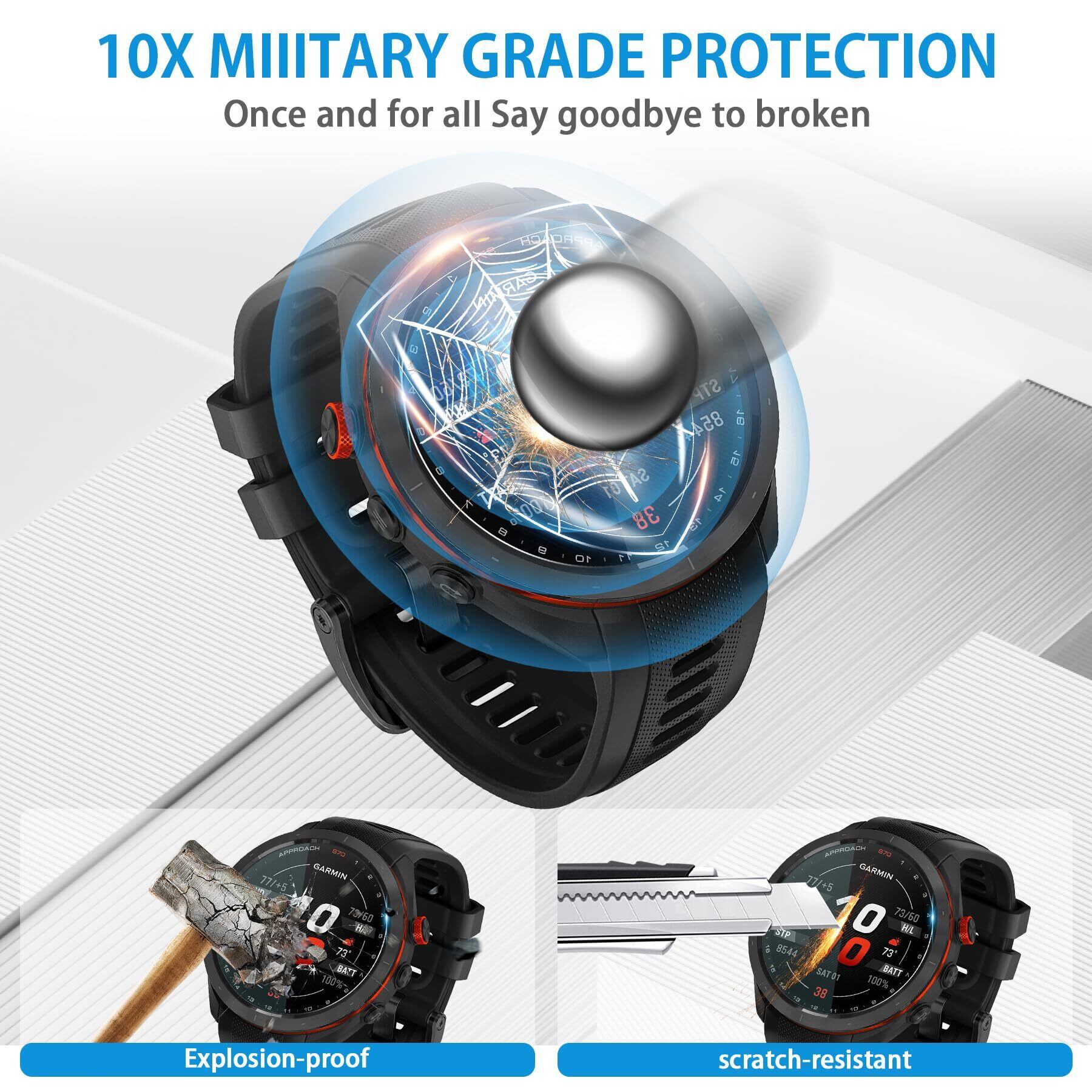 【製品材質】2.5D 9H硬度強化ガラスで偶発的な摩耗や傷を防止し、取り外したときに気泡や残留物がありません。 Garmin Approach S70 47mmの画面を保護します。