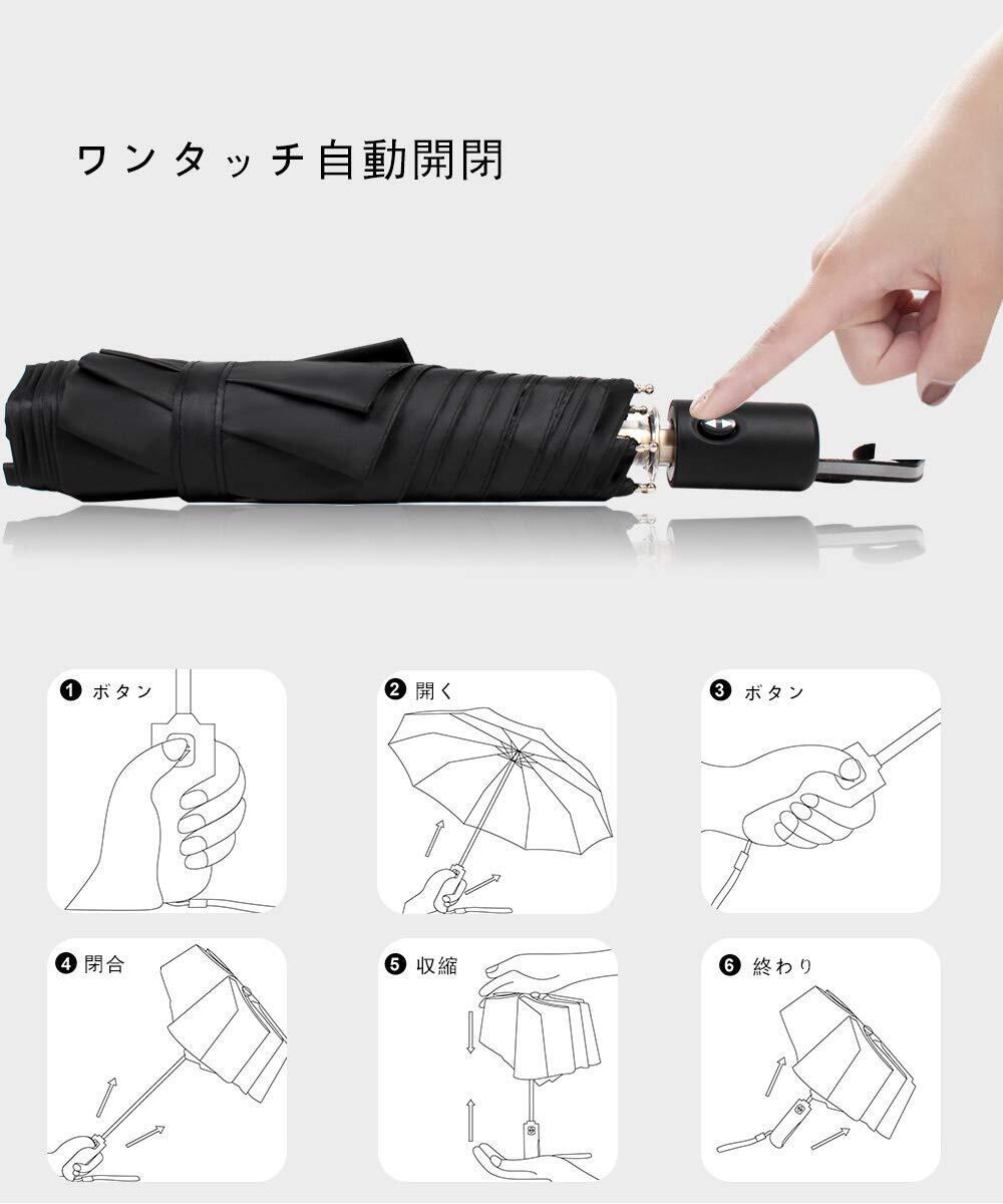 【超軽量折り畳み日傘】 自動開閉折り畳み日傘はガラス繊維と航空アルミ合金傘骨を採用するので、傘本体の重さは199gの軽量化に実現しました。普通の折り畳み傘の半分の重さしかないです、カバンに入れて常備しても負担になりません。持っていることを忘れるくらい、軽くて持ち運び便利!ショッピング途中や旅行をする時に有効な保護を提供します。
