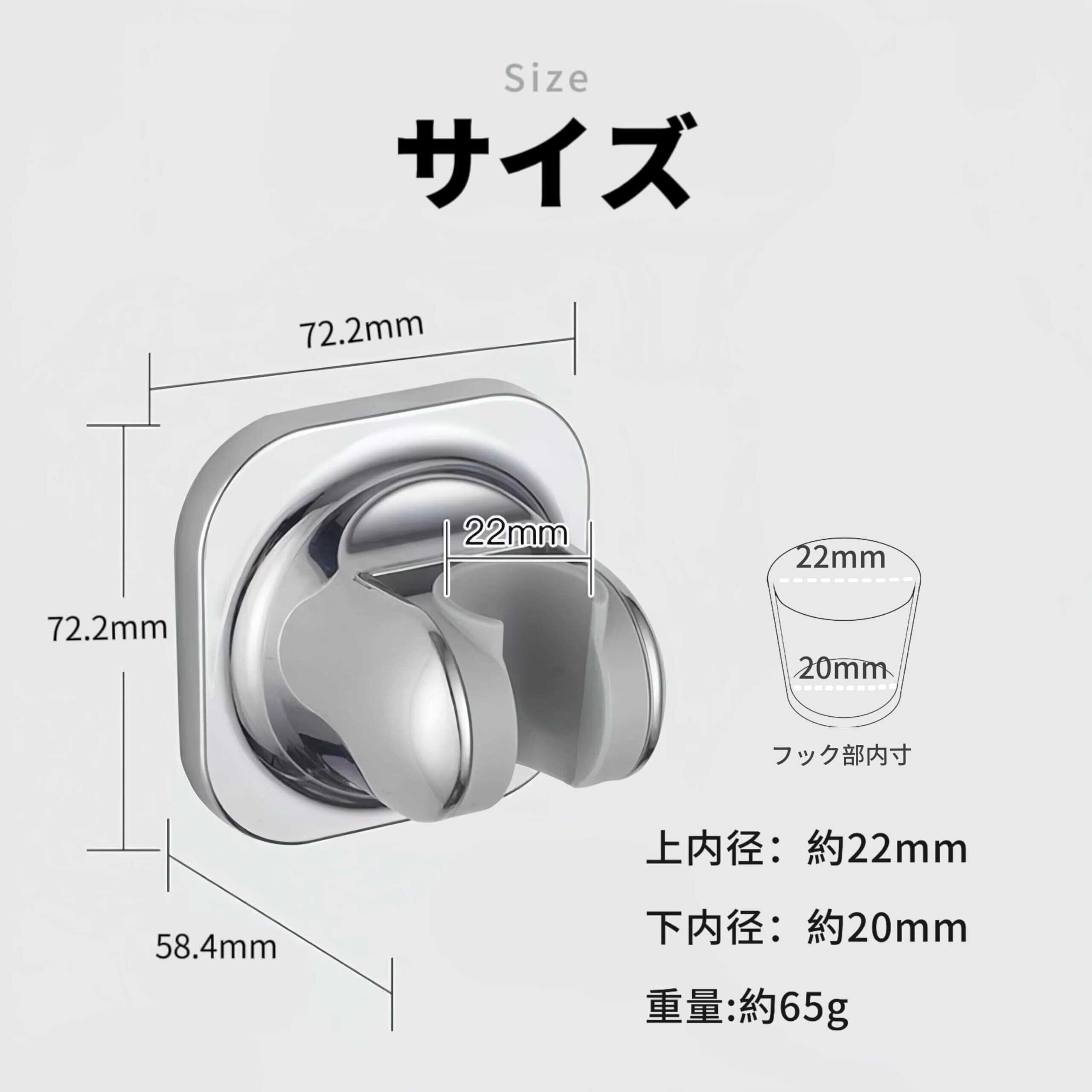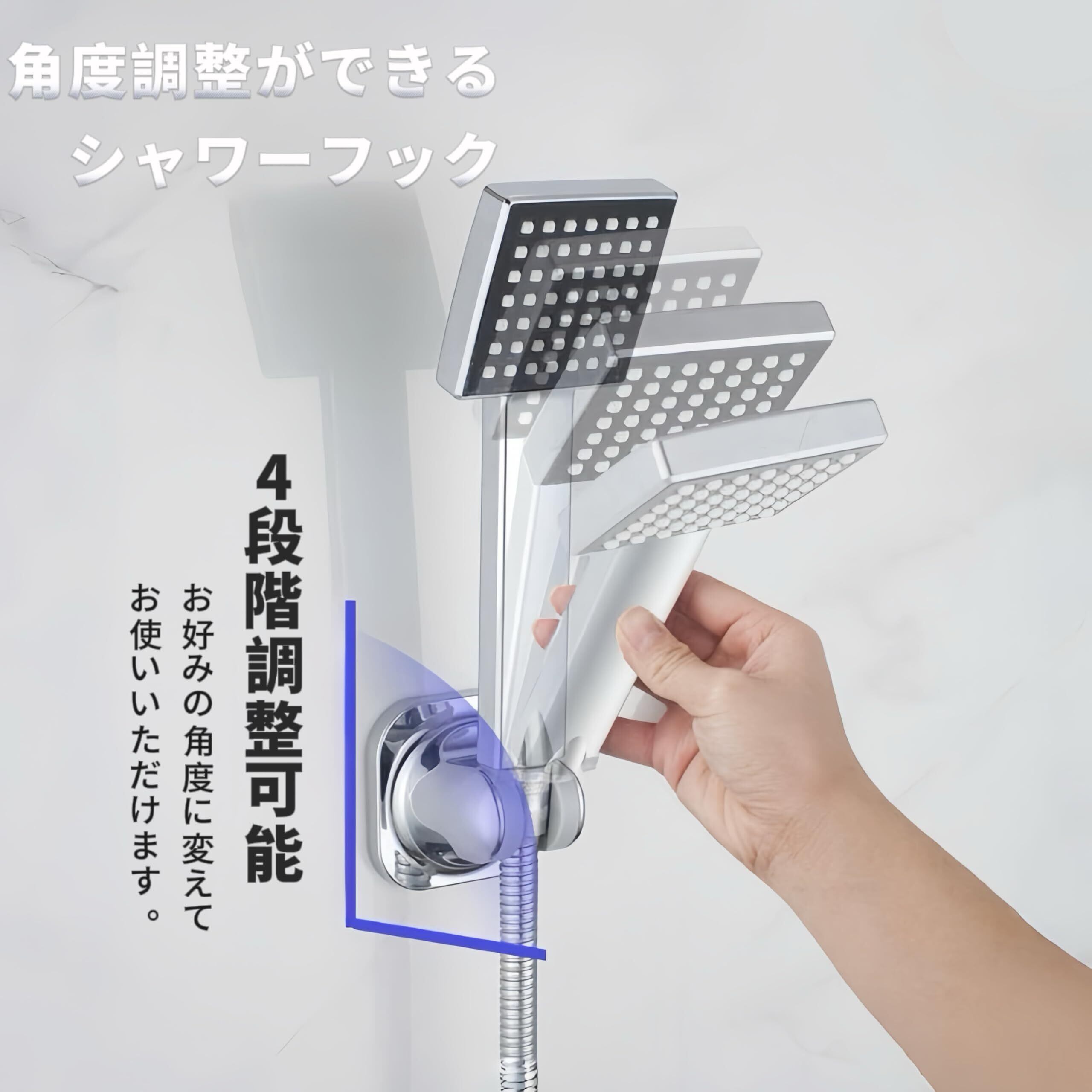 シャワーフック シャワーホルダー 角度調整可能 強力粘着式 穴あけ不要 シャワーハンガー ライドバー 壁掛け 防水 防錆 浴室用 バスルーム シャワーヘッド か 吸盤フック 防水 長持ち 修理交換用 簡単取付 (2個)