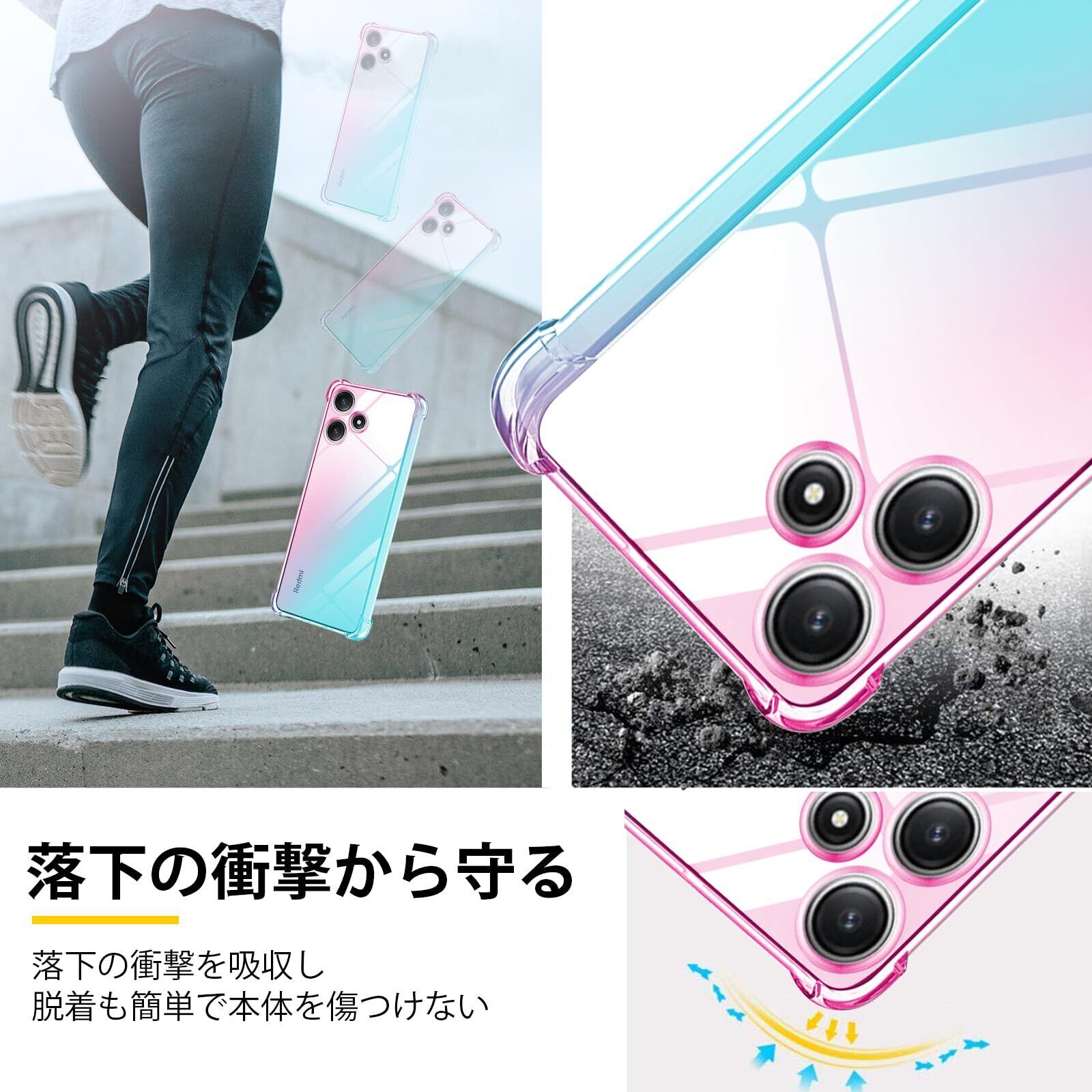 Redmi 12 5G ケースクリア TPU 薄型 軽量 グラデーション色 ケース 耐衝撃 米軍MIL規格取得 滑り止め 黄変防止 防塵 一体型 人気 携帯カバー(ピンクグリーン)
