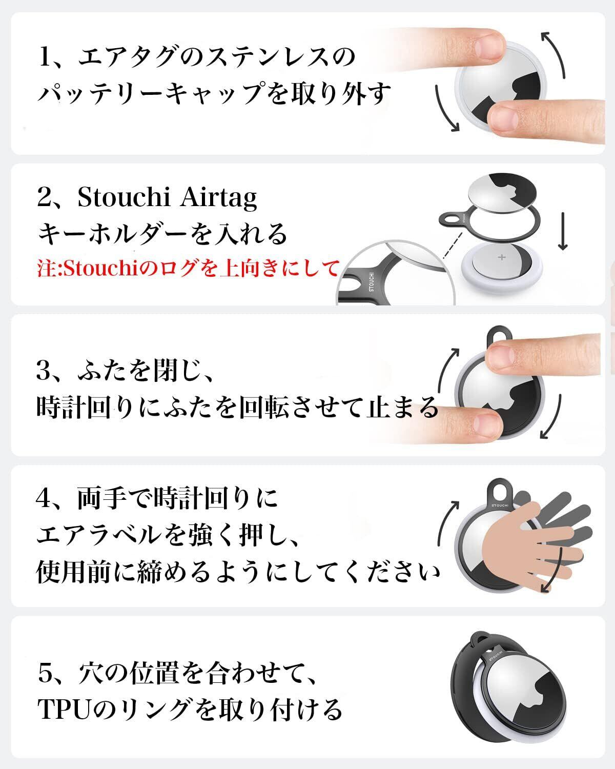【取り付けが簡単】1.エアTagのステンレス電池カバーを取り外す。2.Airtagキーホルダーを入れる。3.カバーを取り付け直し、時計回りにカバーを回する。