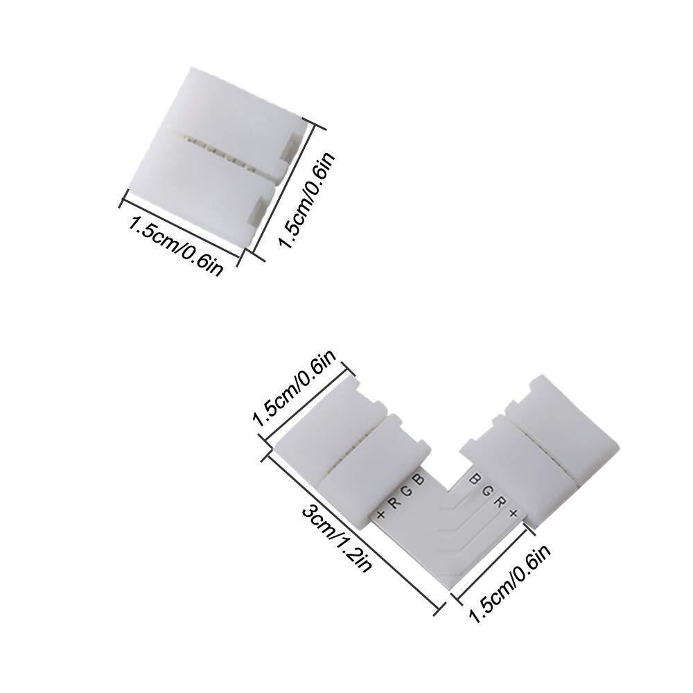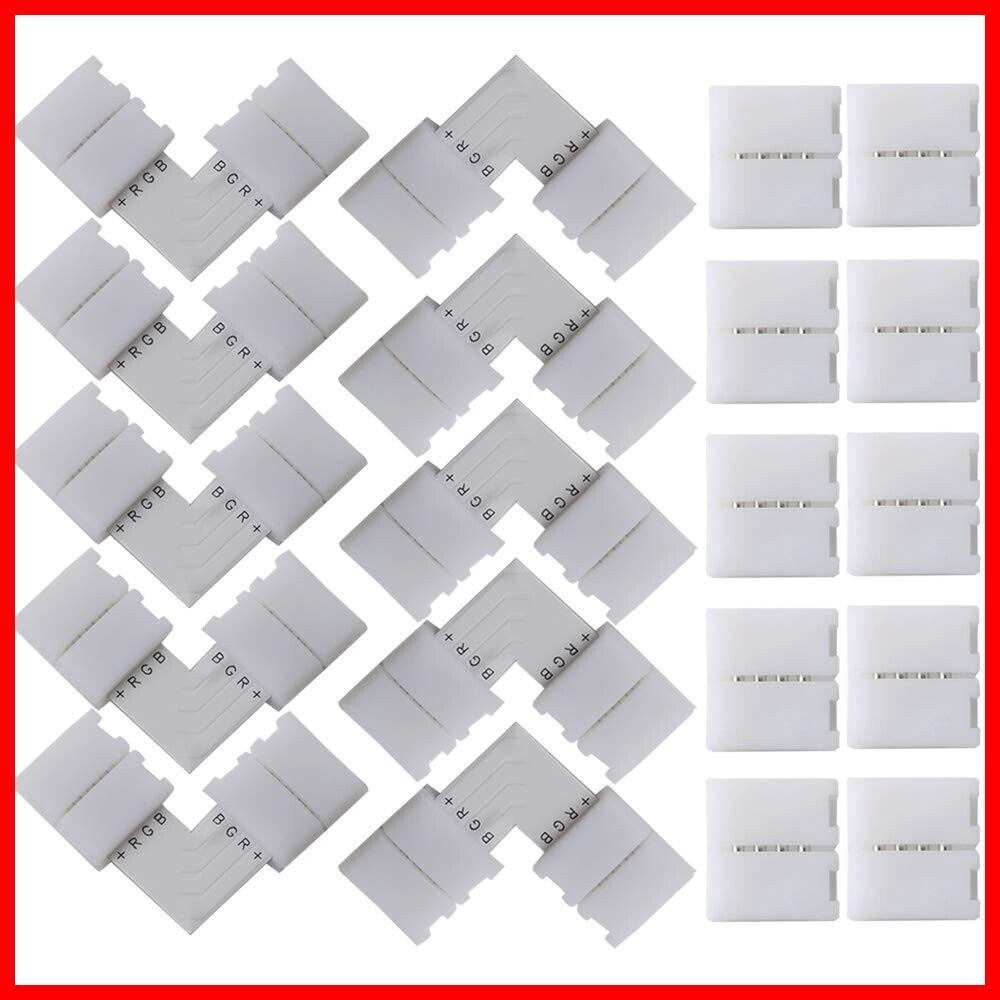 FULARR® 20個 プロ4ピン10mm幅RGB LEDストリップライトコネクタキット:10個L字型コネクタ + 10個ギャップレスコネクタ。RGB LEDテープ装飾スナップコネクタ、LEDストリップ連結ジャンパー、LEDテープと簡単接続、半田不要、使いやすい