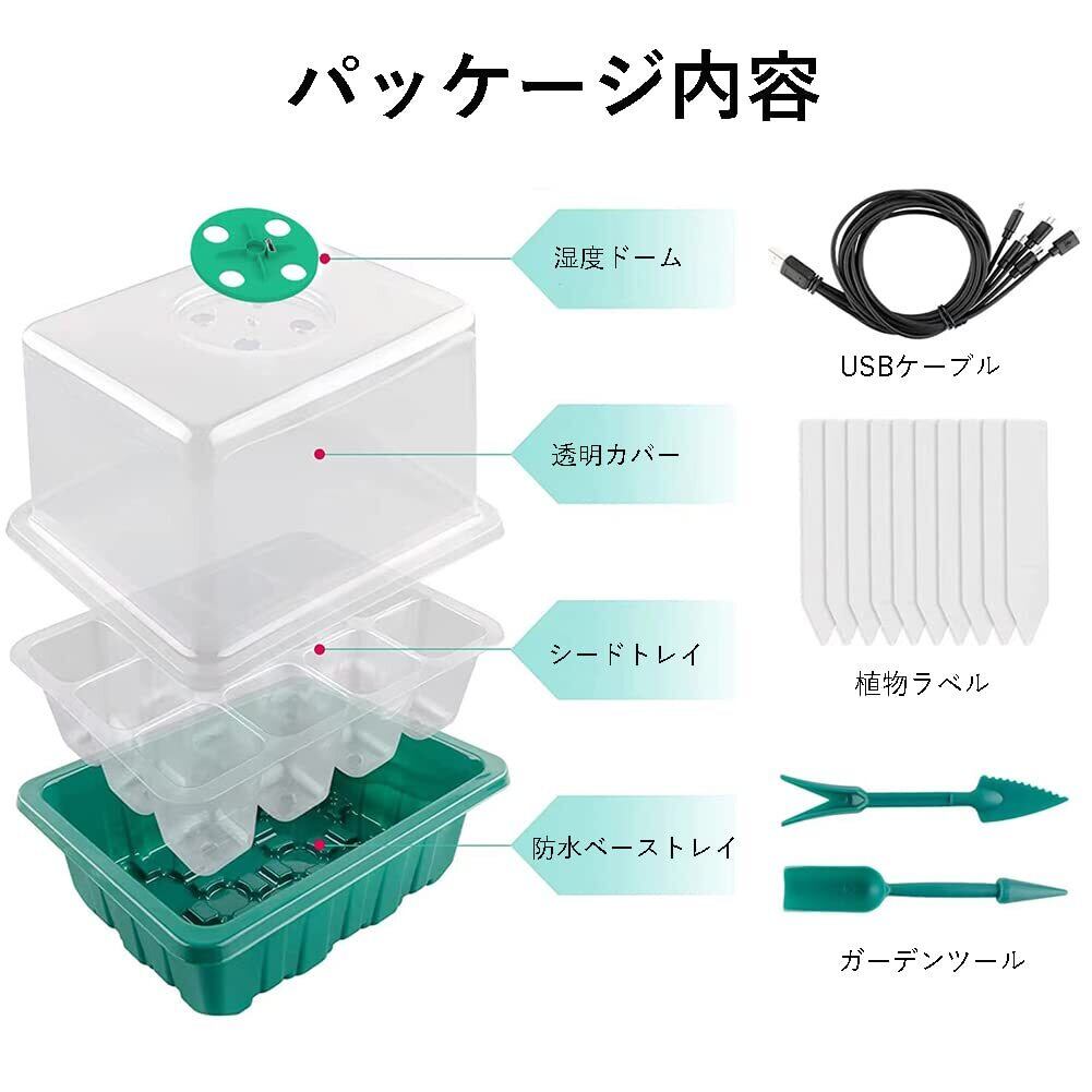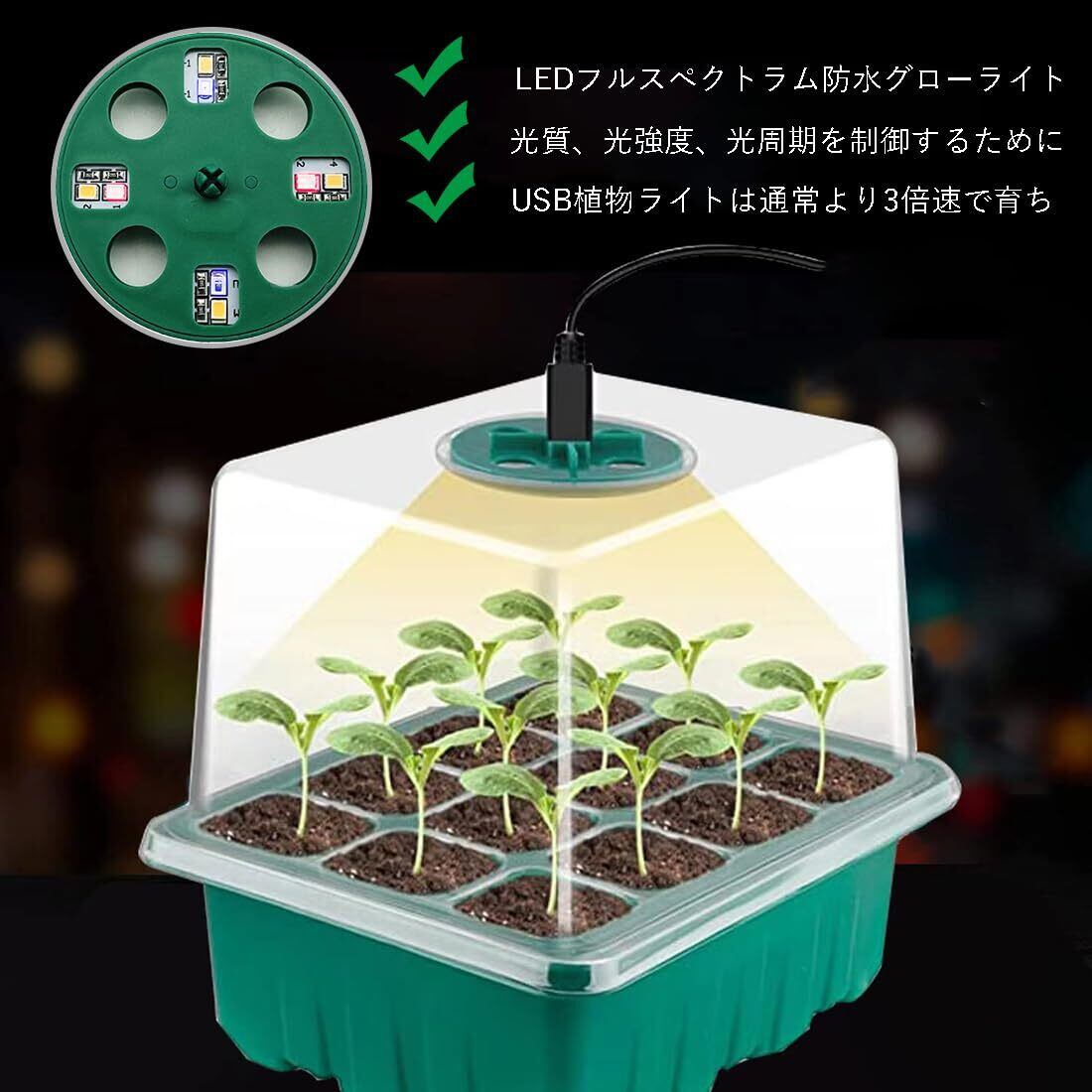 育苗ポット植物育成ライト付き 育苗トレイ 育苗箱 12穴 5個セット 高くする透明カバー 種子トレイ 発芽•育苗セット 種まきハウス 苗箱 種まき器 育苗ボックス 便利性 耐久性 通気性 野菜栽培 多肉植物 家庭菜園 園芸/植栽/庭園 プラグトレイ | hananoki
