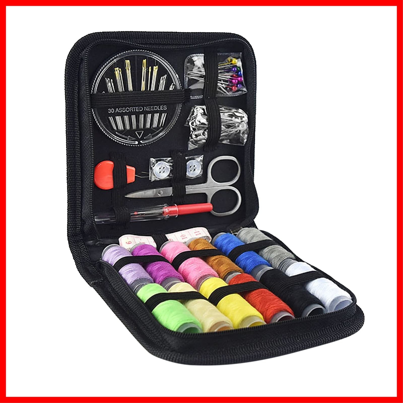 裁縫セット ソーイングセット 12色糸 携帯式 刺繍 手芸 家庭用 裁縫道具セット 裁縫練習 衣類補修 家庭用 旅行用 初心者 男女兼用 (ブラック収納バッグ付き)