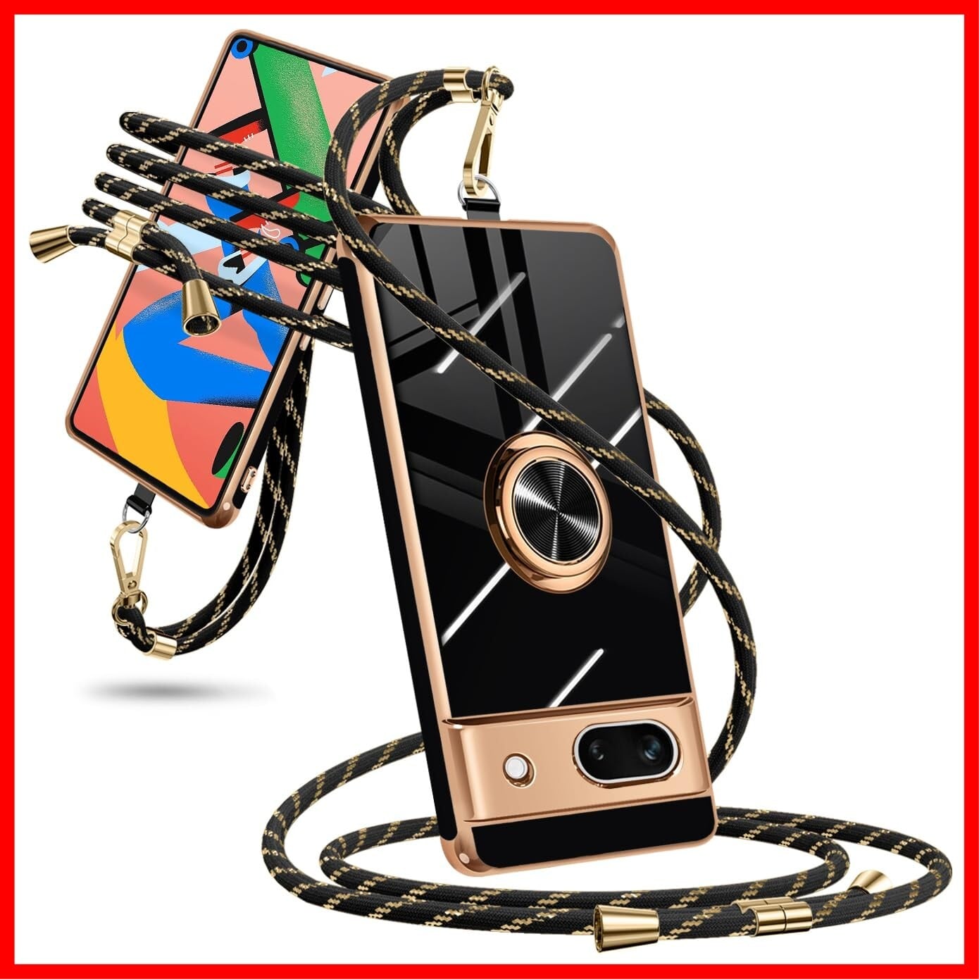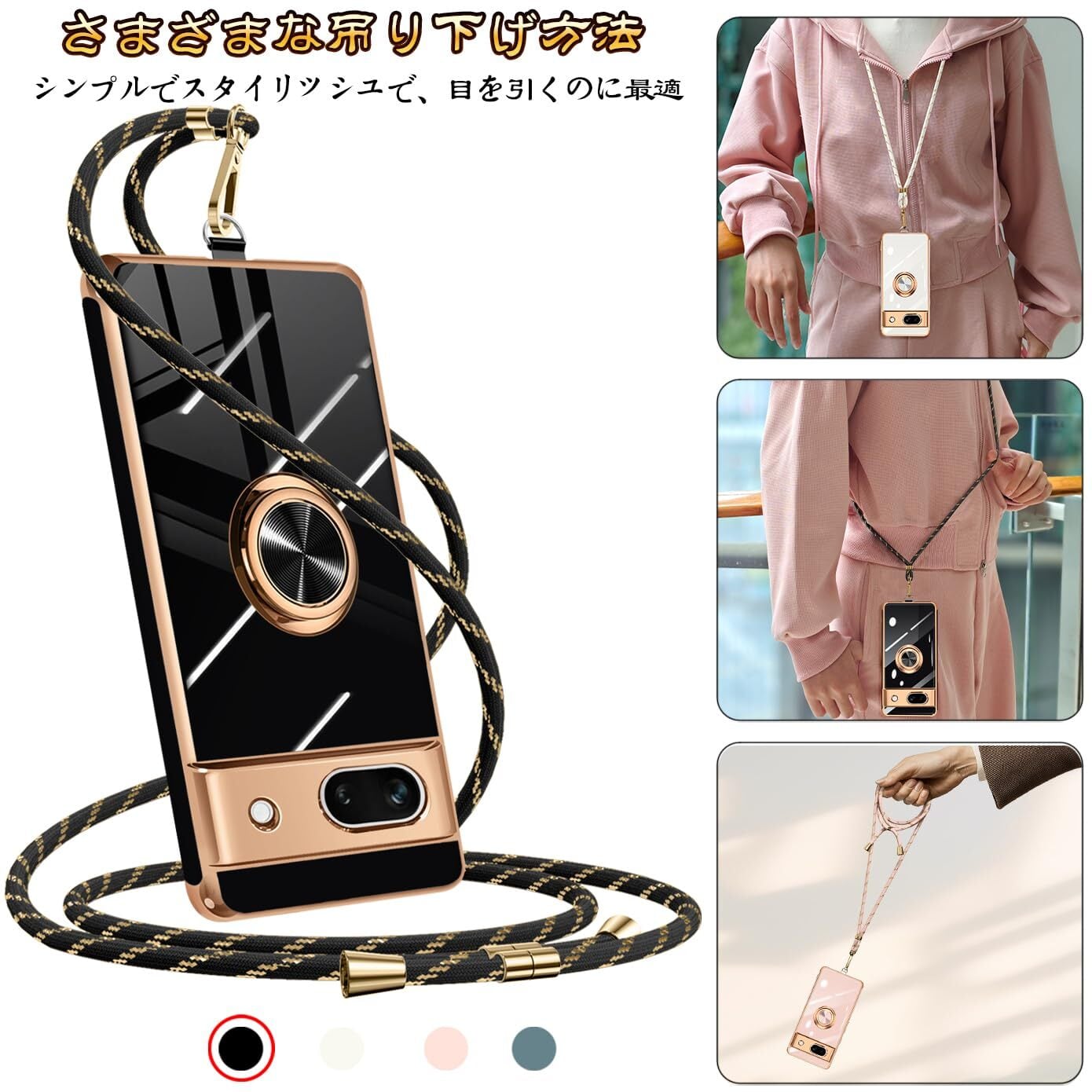Google Pixel 8a ケース ショルダー リング付き 耐衝撃 スマホケース ピクセル8a カバー リング 肩掛け 斜めかけ 縄掛けケース 紐付き 斜めがけ 織りストラップ付き ネックストラップ 長さ調整可能 取り外し可能(ブラック)