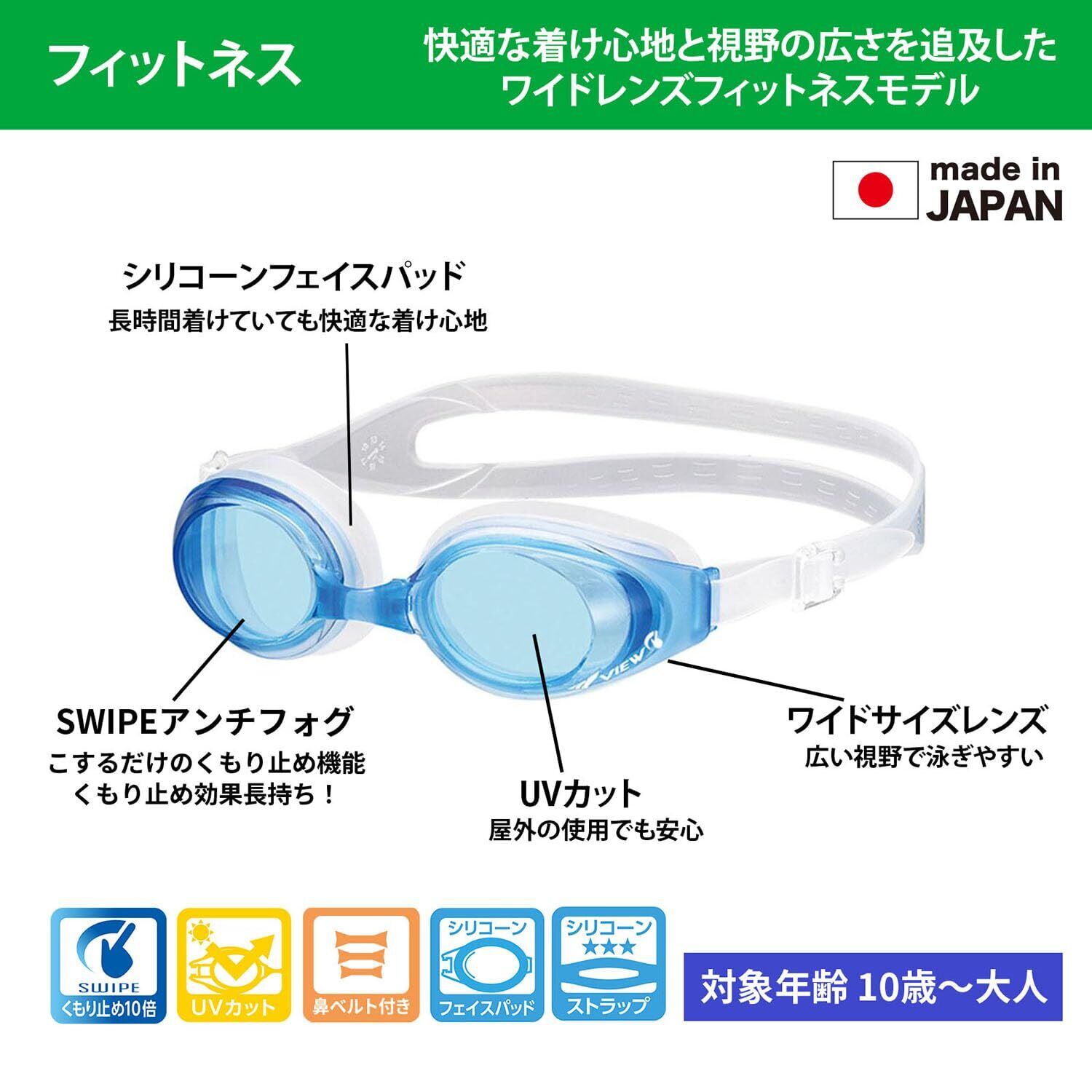 [ビュー] 日本製 スイミングゴーグル 大人用 こするだけのラクラクくもり止め機能付 視界が広く明るいフィットネスモデル V630SA