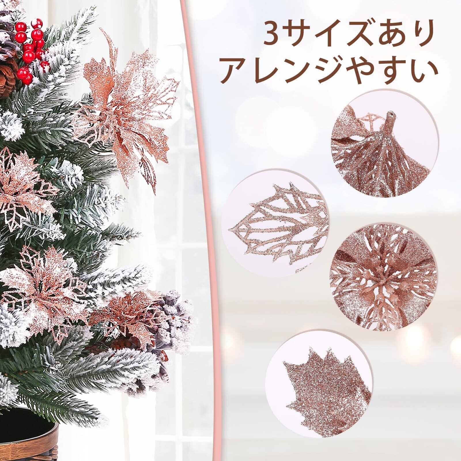 LEMESO クリスマスツリー オーナメント 飾り 造花 21個入 クリスマス 飾り クリスマスツリー オーナメント 飾り クリスマスリース 装飾 飾り付け ローズゴールド 10cm/12cm/16.5cm
