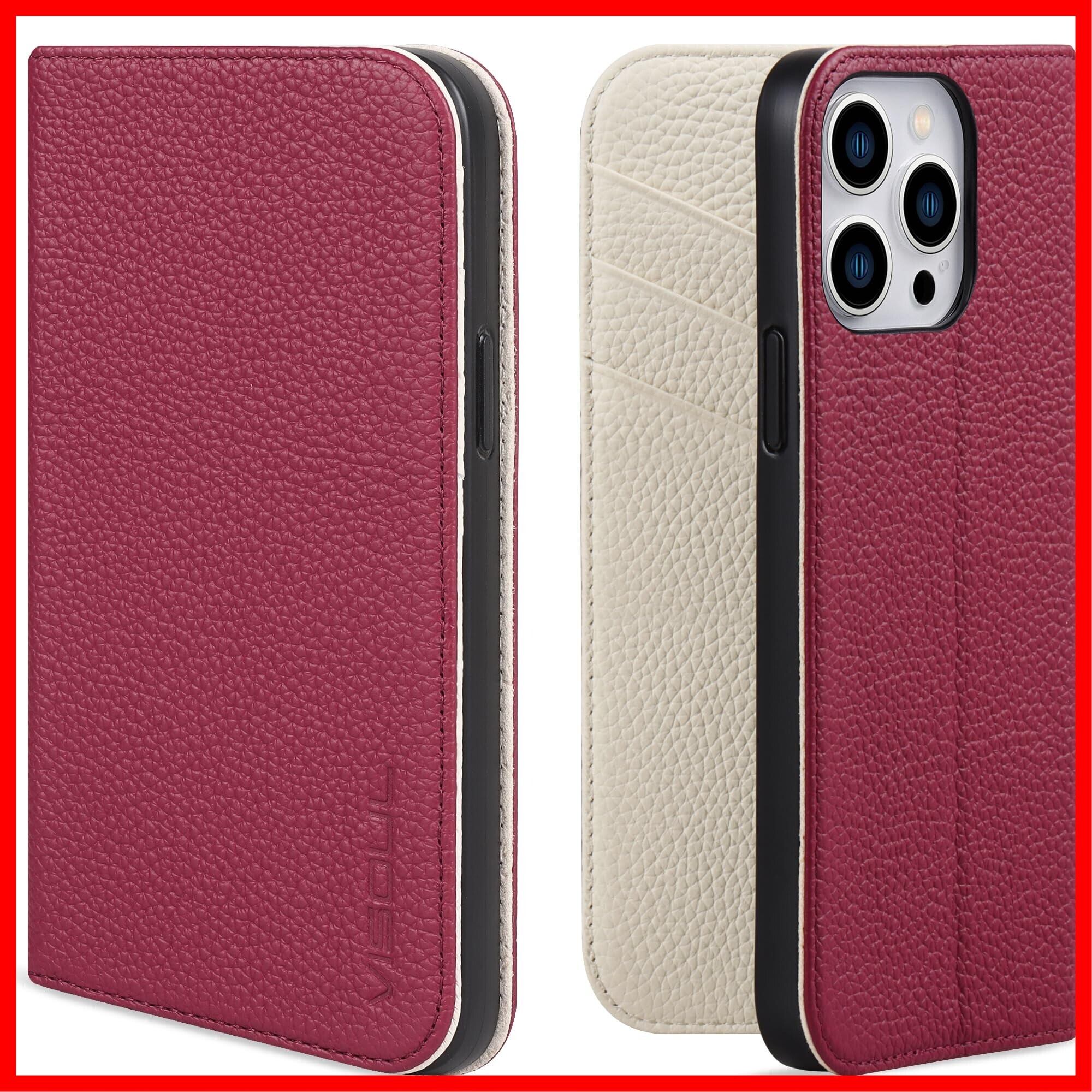 VISOUL iPhone 12Pro 対応 ケース 手帳型 iPhone 12 対応ケース 手帳 手帳型 本革 レザー スマホケース カード収納 携帯ケース 全面保護 マグネット 横置きスタンド機能付き アイホン 12 Pro ケース 6.1インチ シュリンクレザー アイフォン12, レッド.ホワイト