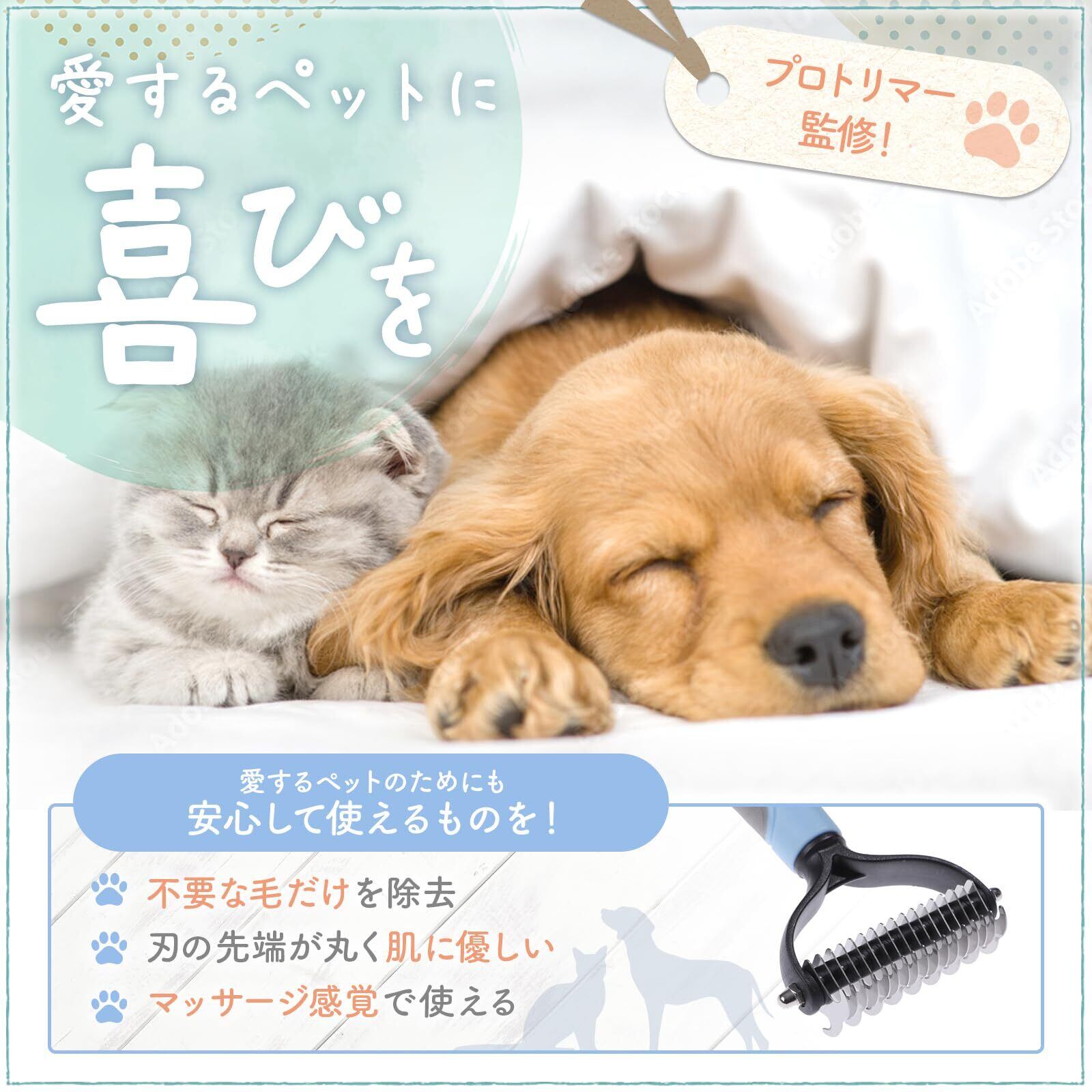 【ごっそり抜け毛除去】両面刃構造により粗目で毛をときほぐし、毛玉を取り除きます。細目で抜け毛を取り除きます。毛並みの状況によって刃の使い分けができます。