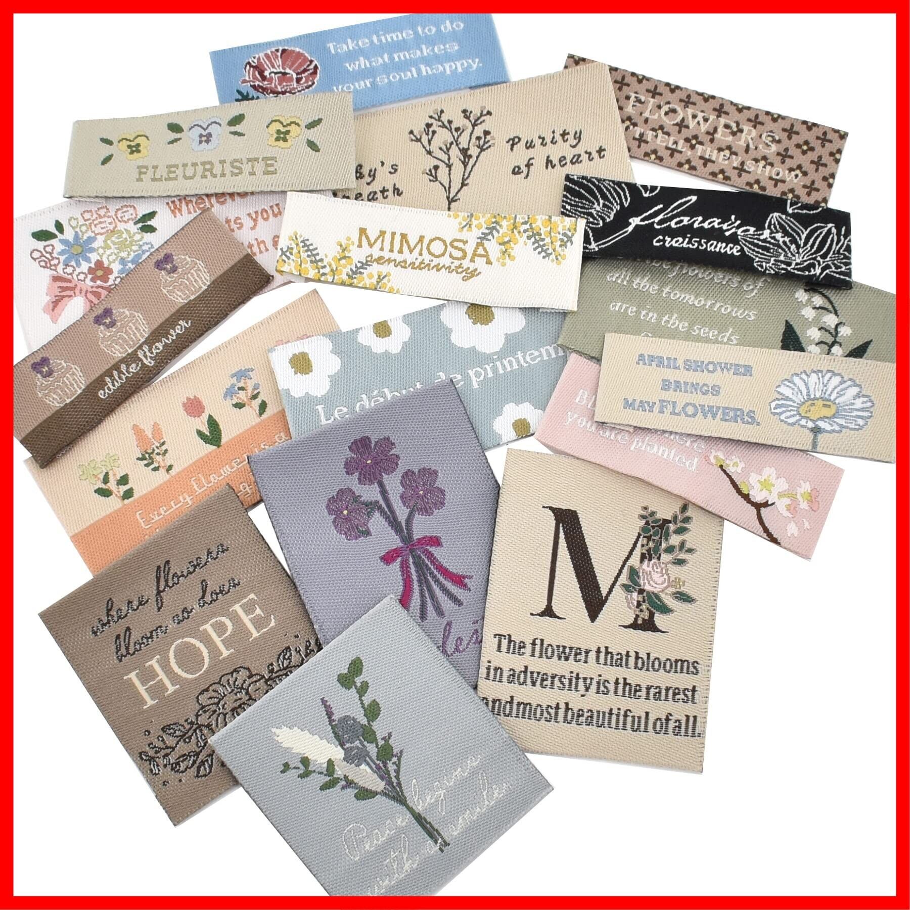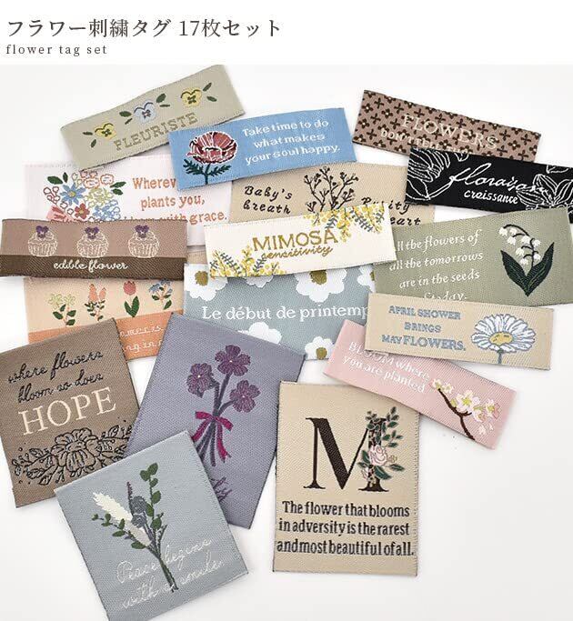 MYmama フラワー 刺繍 タグ 17枚セット ワッペン ハンドメイド ラベル
