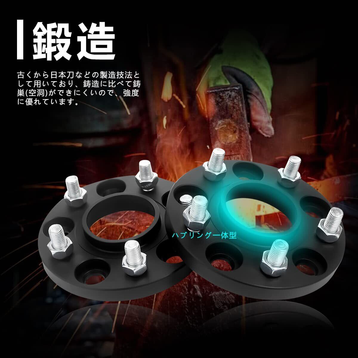 GAsupply 鍛造ワイドトレッドスペーサー PCD100 5H 内径56.1 M12XP1.25 厚さ15mm ワイトレハブリング一体 マットブラック【2枚セット】
