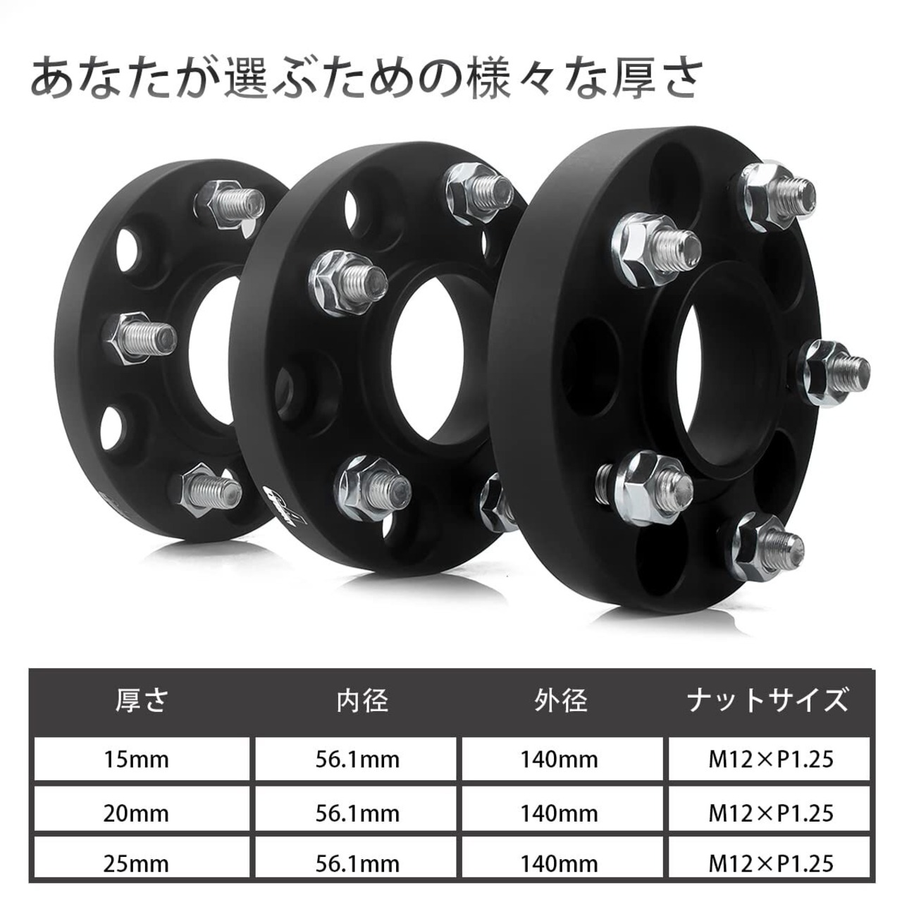 【ボルト&ナット】本製品のボルトとナットには、強度の弱い亜鉛ボルトを使用せずに、高強度のカ一ボンスチ一ル鋼を採用。高い強度で車の足元を支えます。※ナットは専用設計の為、スぺ一サ一の厚みによってナットの長さも異なります。
