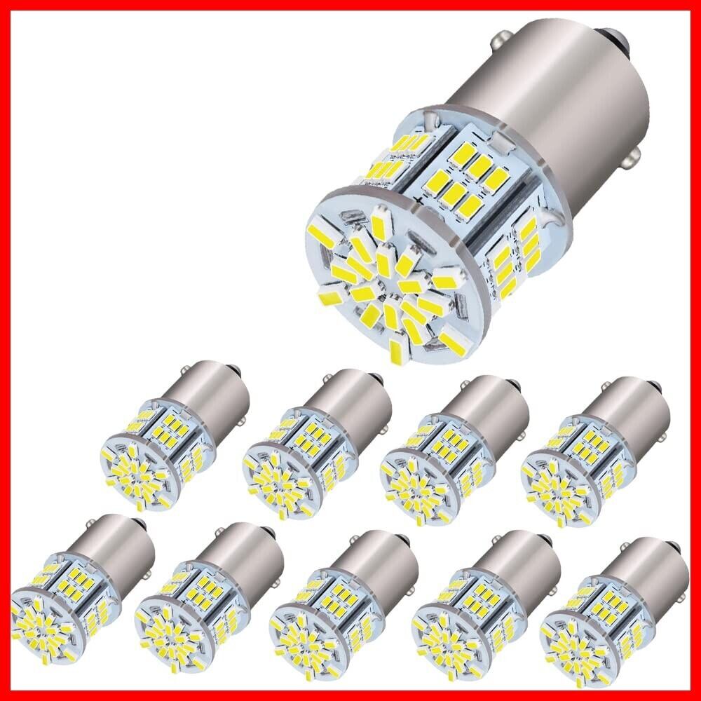 【S25シングル LED ホワイト 10個】高発光効率の3014LED素子54個搭載、360°全方位照射でき、DC 12-24V車用バルブ10個セット。