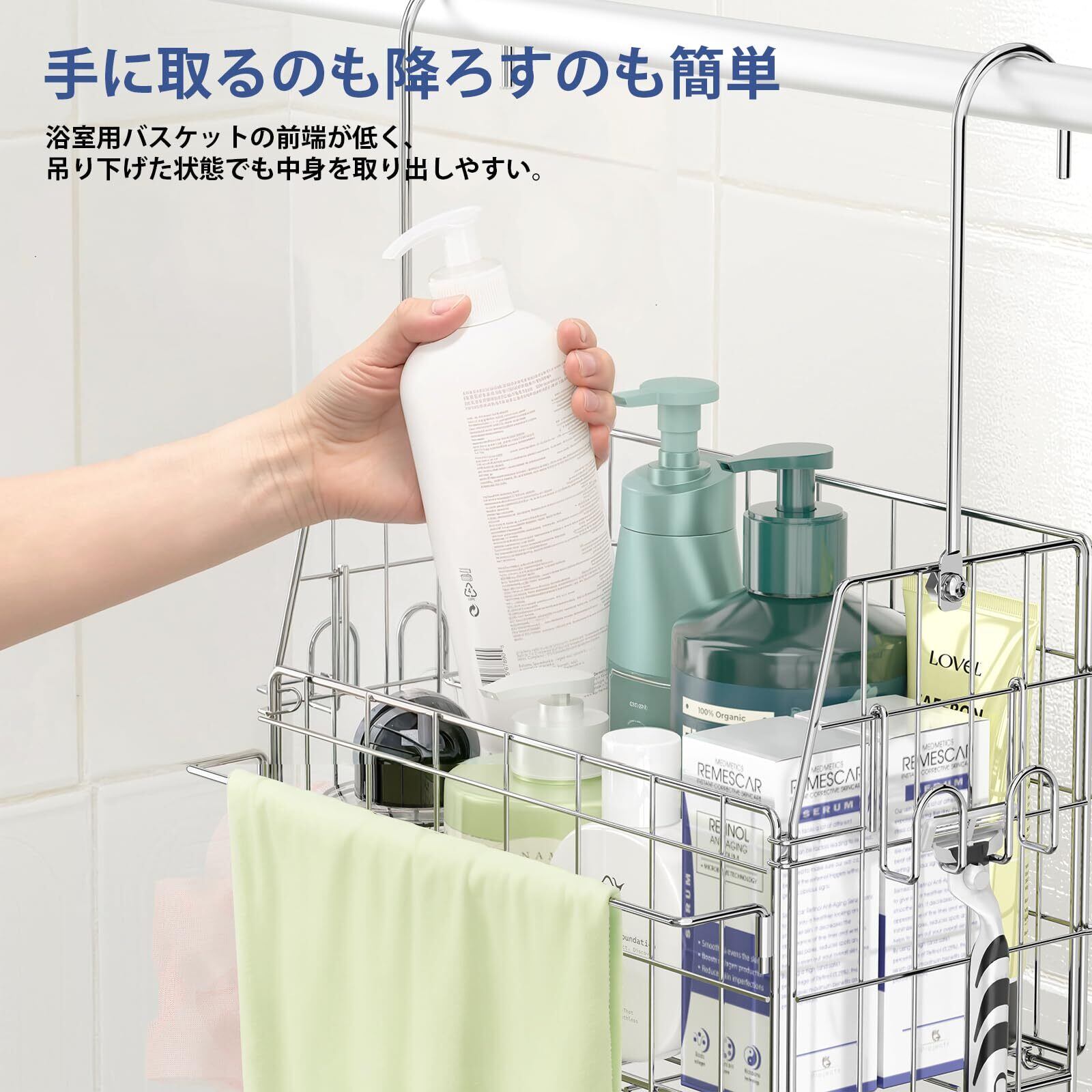 【幅広い用途】このステンレス バスケットは、吊り下げ棒があるあらゆる場所に適しています。脚が付いているので、床に置いても使用可能。床に置いたときに底が直接床に触れない形なので、汚れがたまりにくい。 洗面所にフックをかけるスペースがなくても、床に直接置いて使うことができます。バスルームだけでなく、ランドリールームで洗剤や柔軟剤、洗濯ネットなどをすっきり収納できるランドリーバスケットとしても便利に使えます。また、ベランダに置いて、掃除用具や洗濯ばさみなどを収納することもできます。ご家庭のさまざまな場所に適しています。日常使いにとても便利です。注:ご購入前にバーの長さが30cm以上であることをご確認ください。