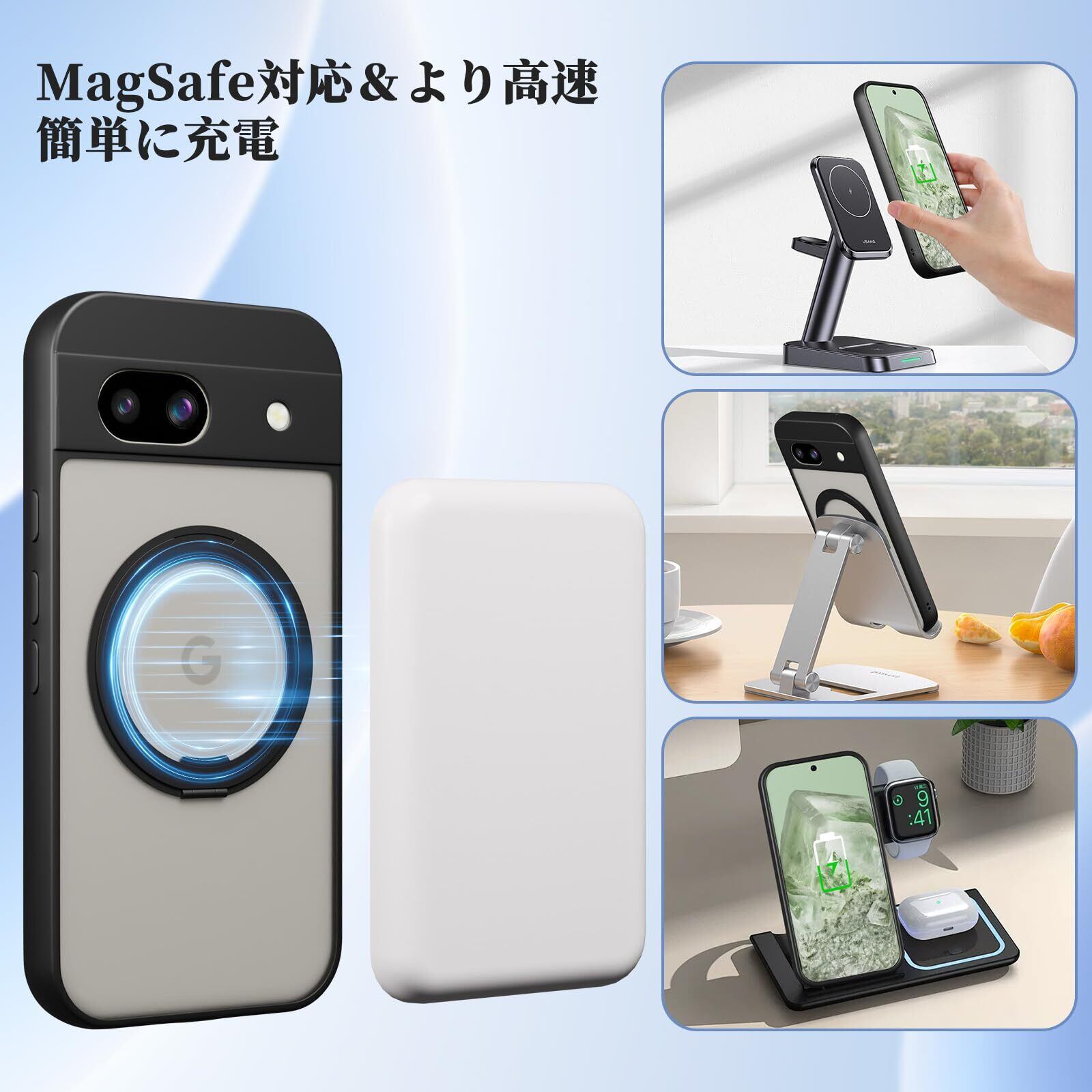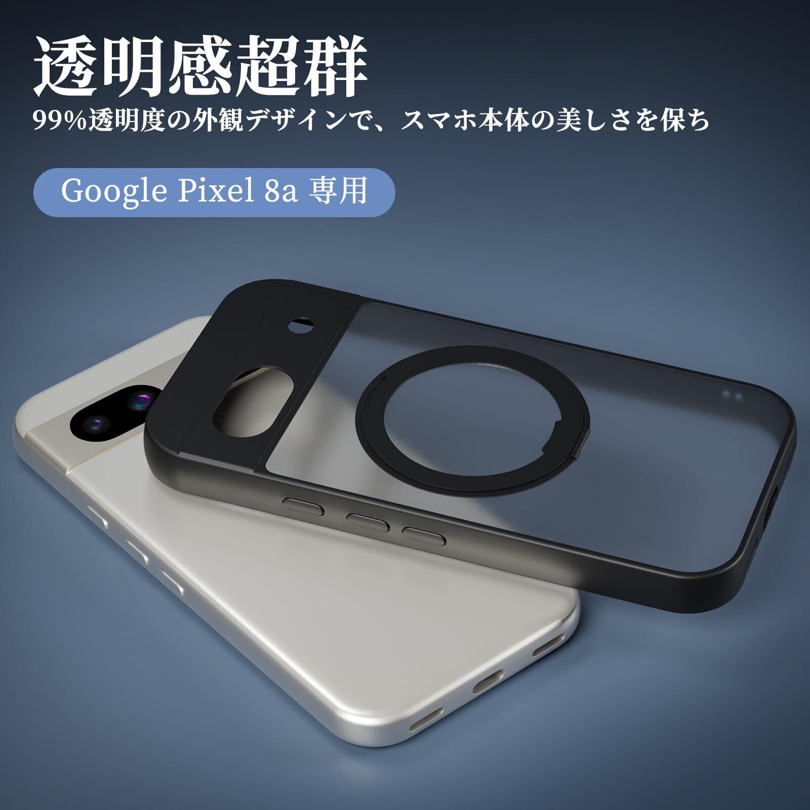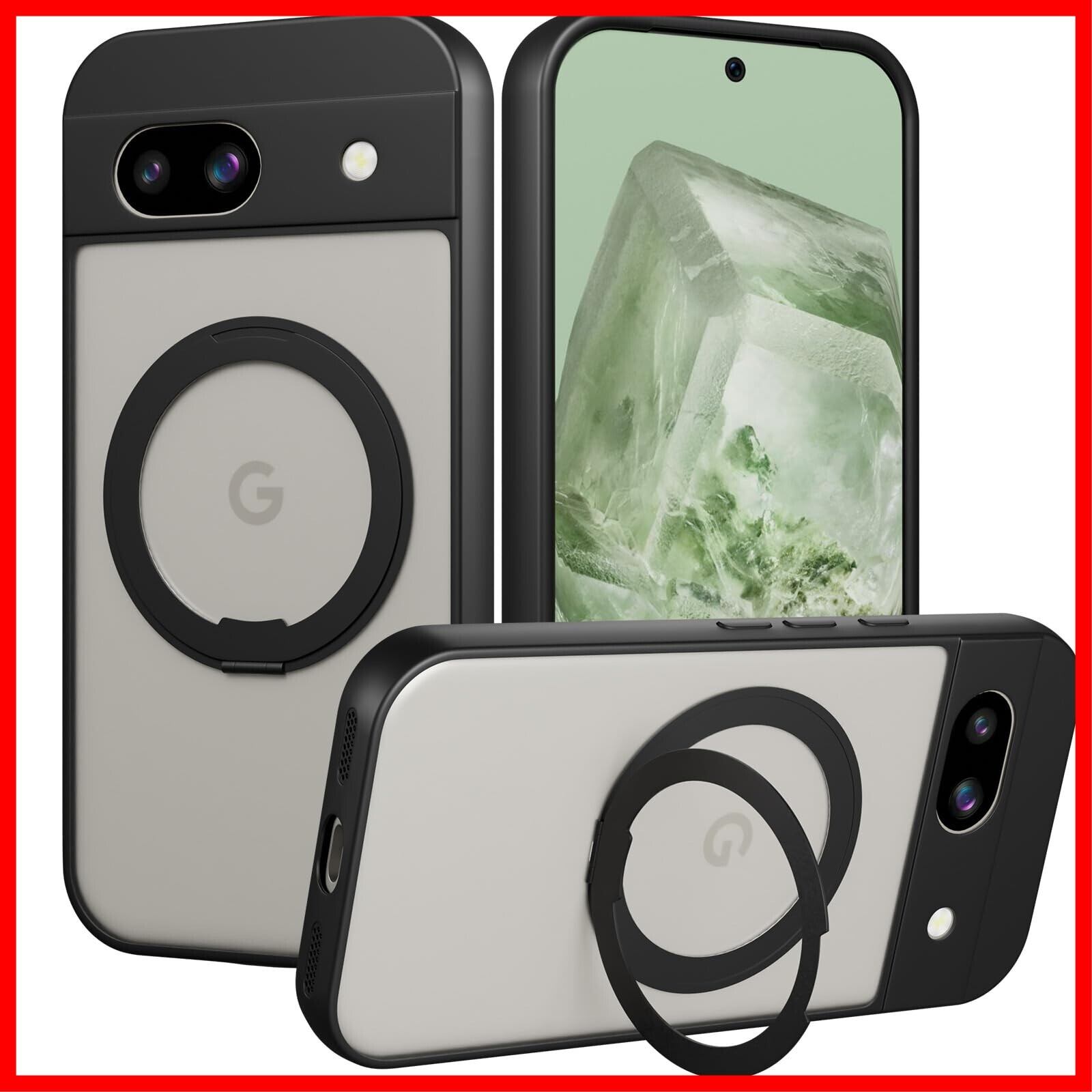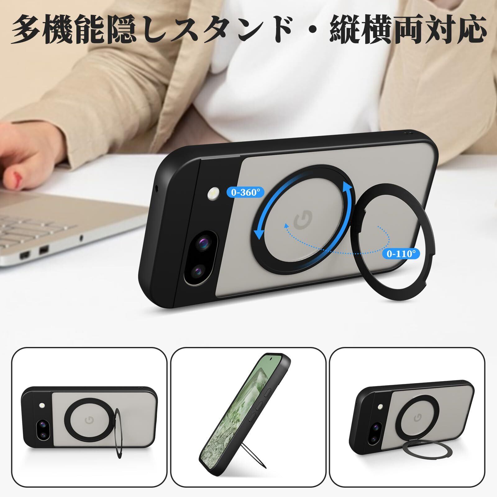 Google Pixel 8a ケース MagSafe対応 【360°回転スタンド】横縦両立・角度自由調整 マグネット搭載 TPU+PC 落下防止 耐衝撃 米軍MIL規格取得 クリア 指紋防止 黄変防止 グーグルピクセル8a ケース ワイヤレス充電対応 滑り止め Google Pixel 8A ケース 6.1インチ (ブラック)