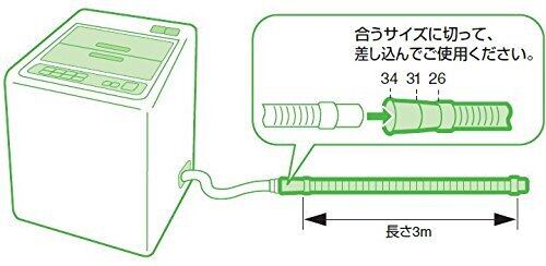 洗濯機排水ホースの延長用です。合うサイズに切って、差し込んでご使用ください。(26・31・34mm)