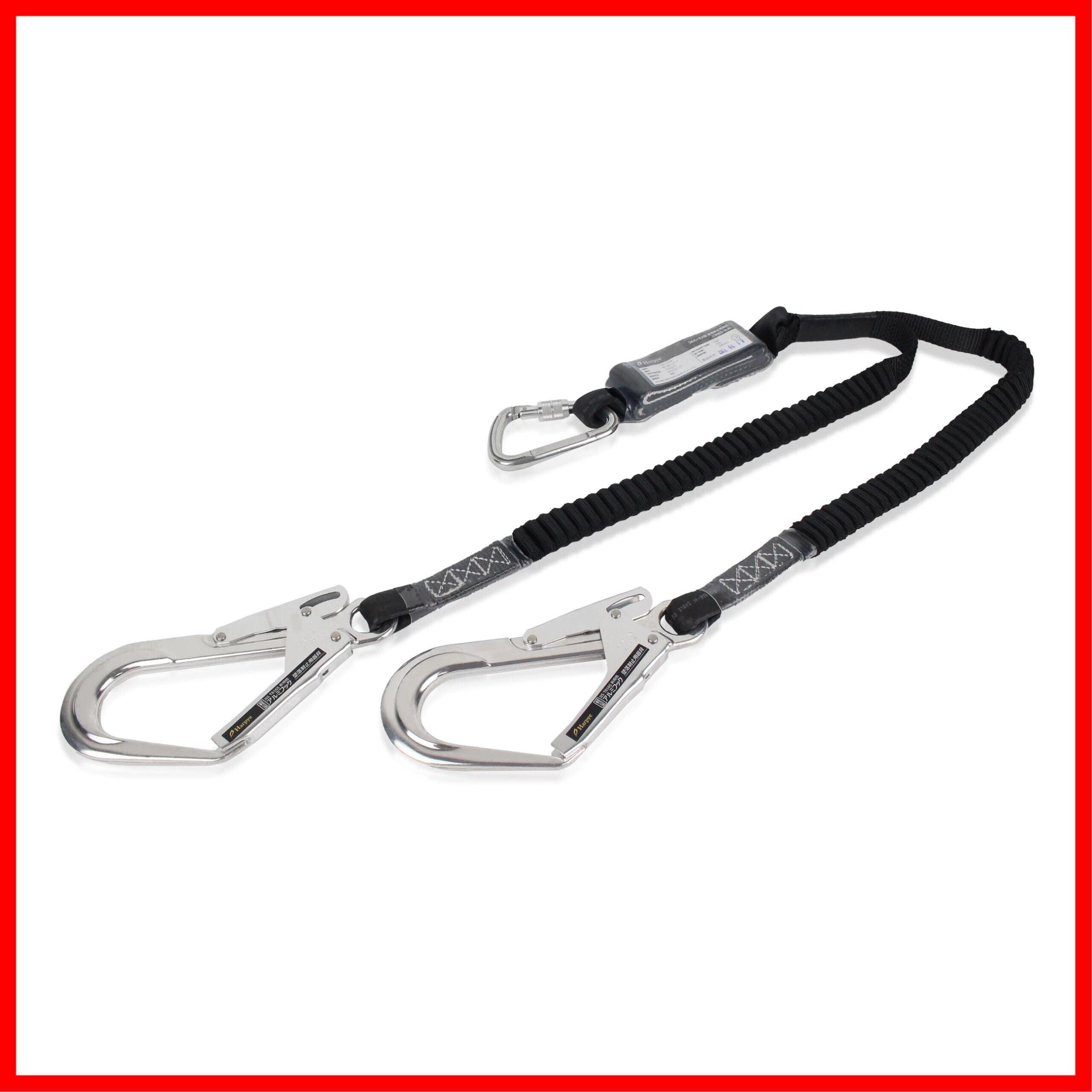[新規格適合] フルハーネス型用 ダブルランヤード[2丁掛け] 伸縮式蛇腹 軽量アルミフック 第一種 墜落制止用器具 100KGまで適合 安全帯