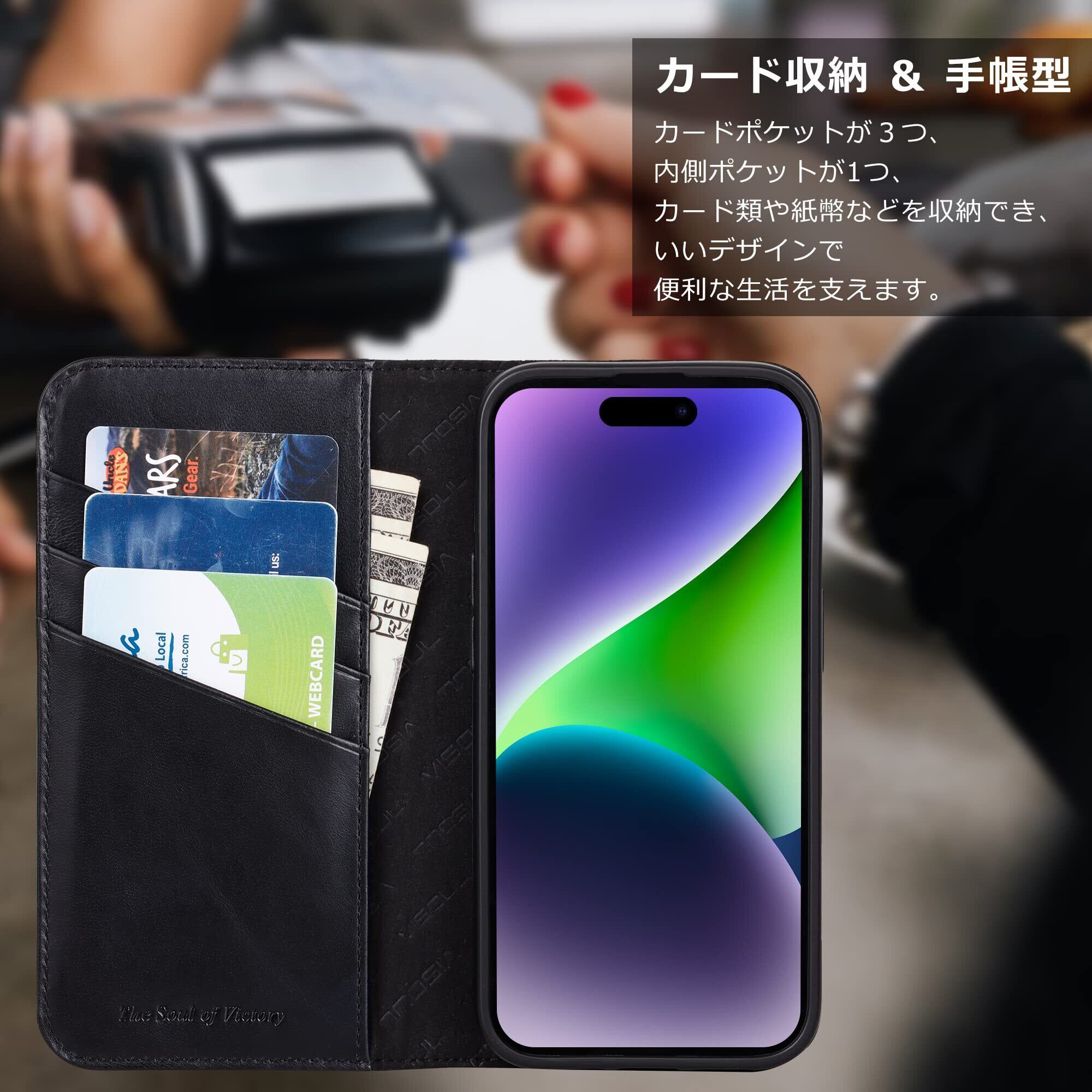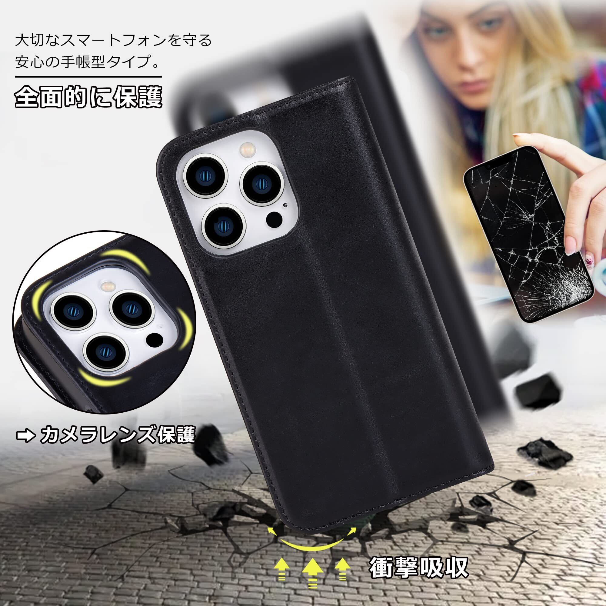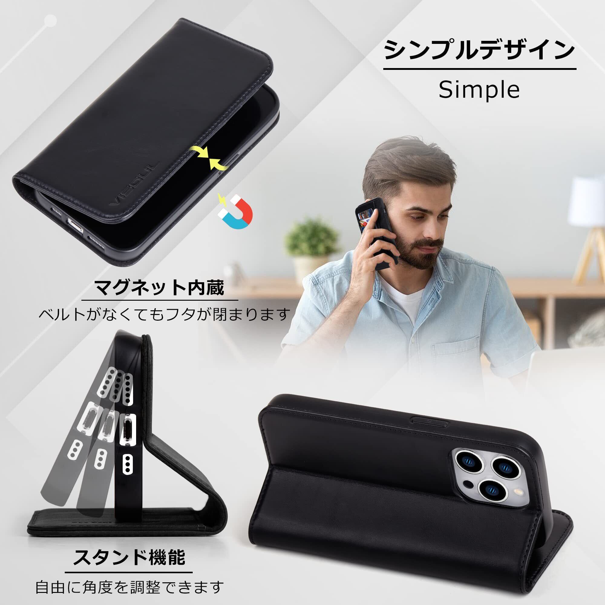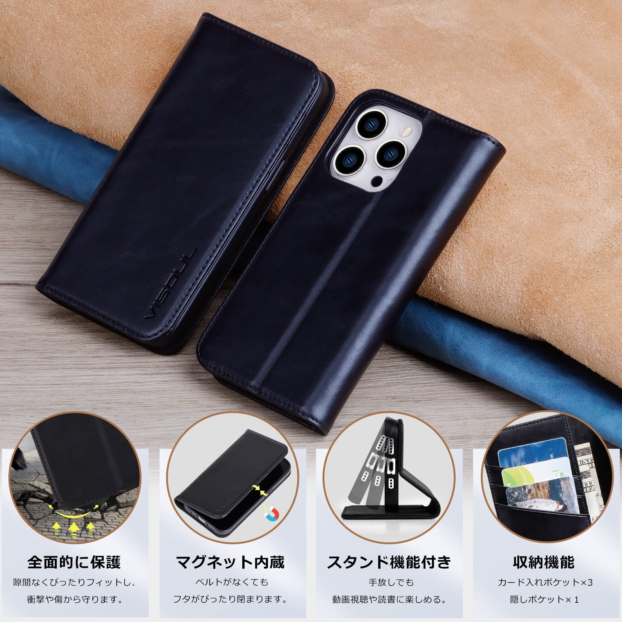 VISOUL iPhone 12 Proケース 手帳型 本革 アイフォン12 プロケース 手帳 レザー スマホケース 携帯カバー 全面保護 マグネット 横置きスタンド シンプルな手帳型スマホカバー アイホン12 Proケース iphone 12Pro/12対応 6.1インチ アイホン12 ブラック | hananoki