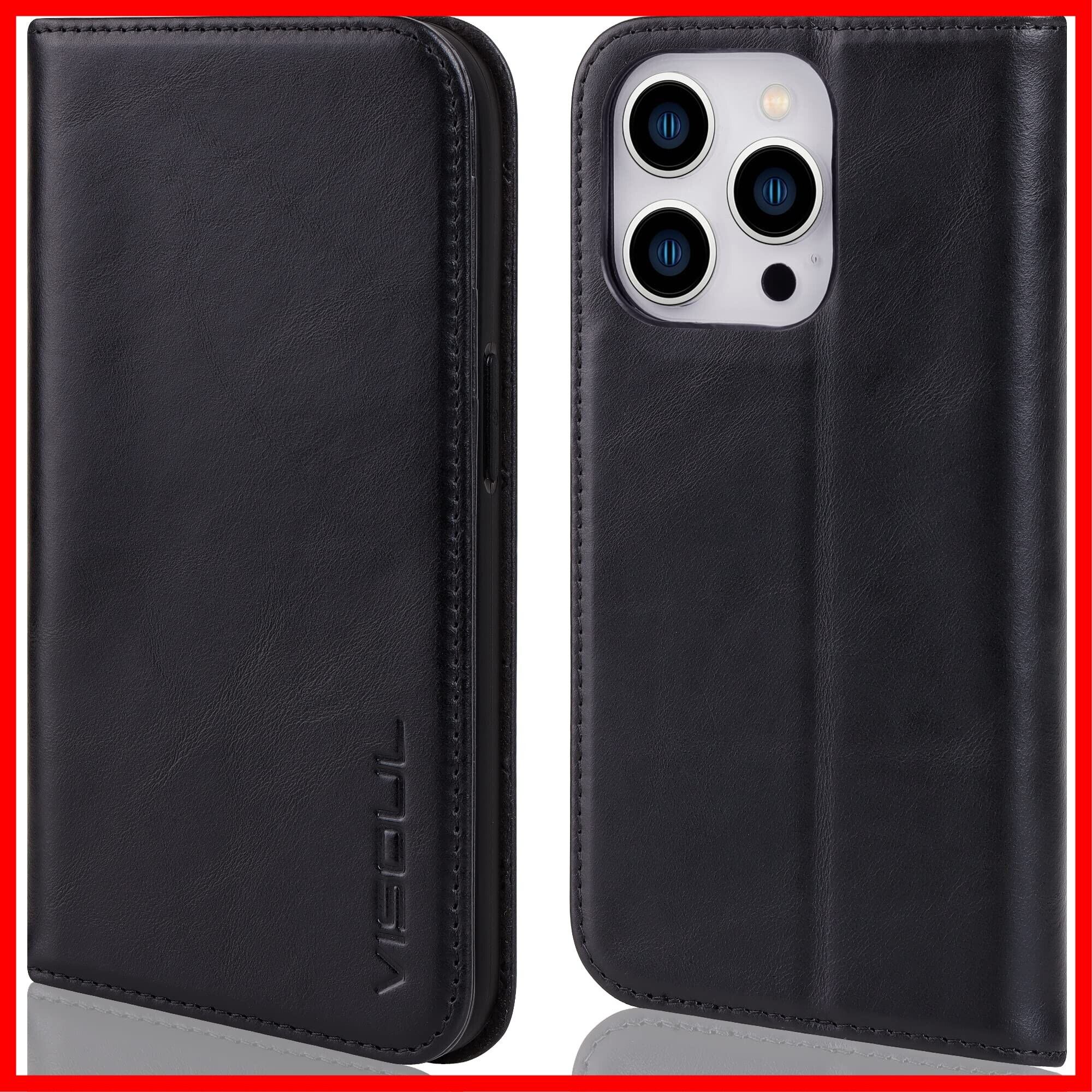 VISOUL iPhone 12 Proケース 手帳型 本革 アイフォン12 プロケース 手帳 レザー スマホケース 携帯カバー 全面保護 マグネット 横置きスタンド シンプルな手帳型スマホカバー アイホン12 Proケース iphone 12Pro/12対応 6.1インチ アイホン12 ブラック